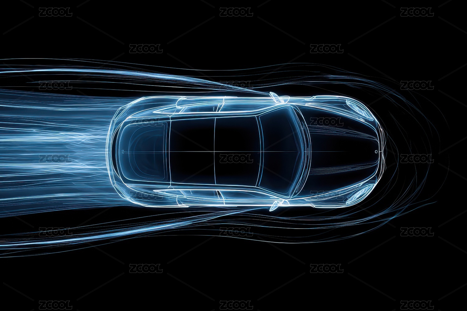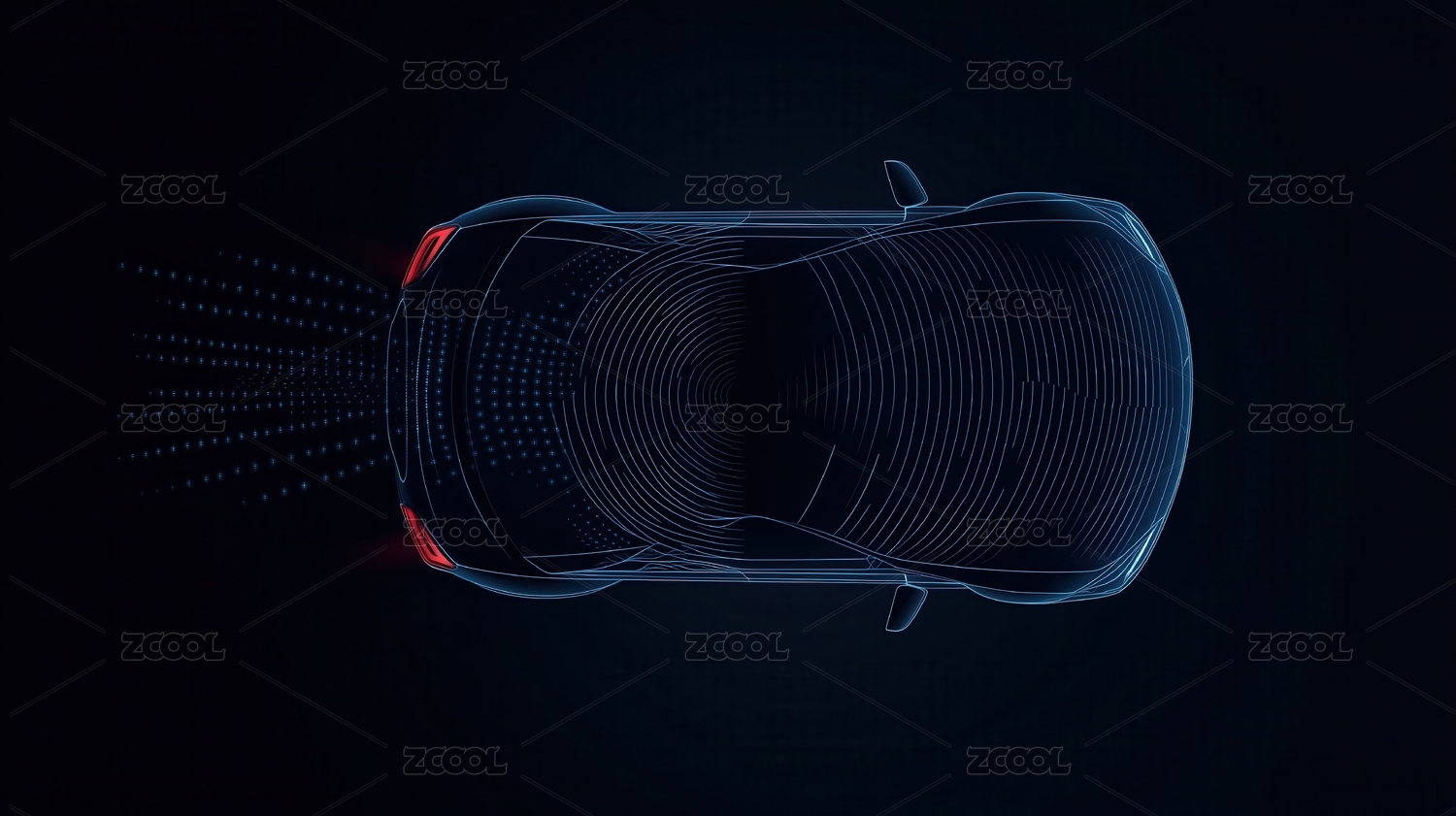 炫蓝线条勾勒的车顶轮廓图