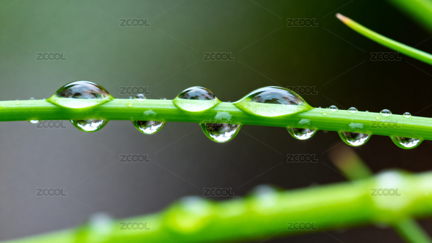 绿茎水滴特写自然清新