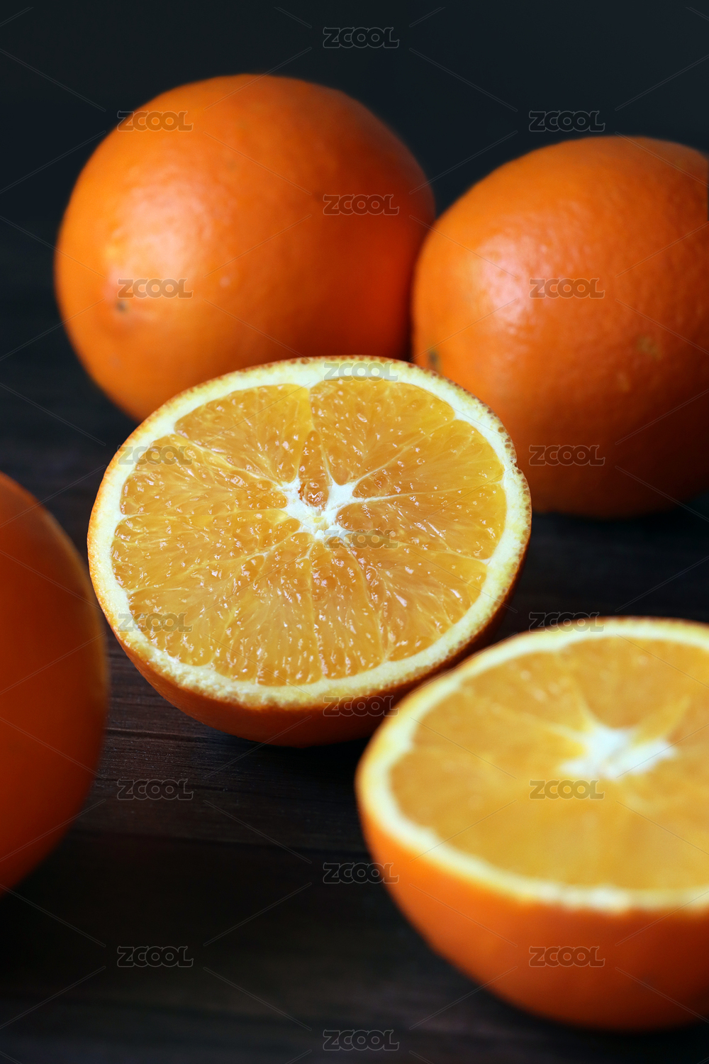 暗色背景切开一半的橙子
