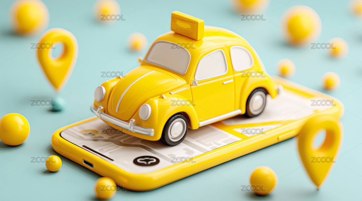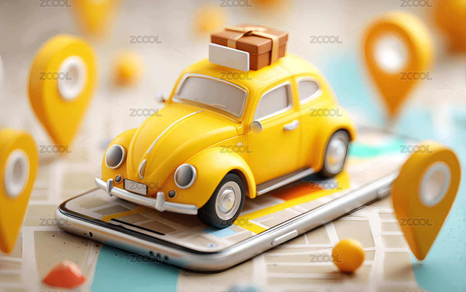 黄色,卡通,轿车,汽车,定位,图标,运输,旅行,插画,路