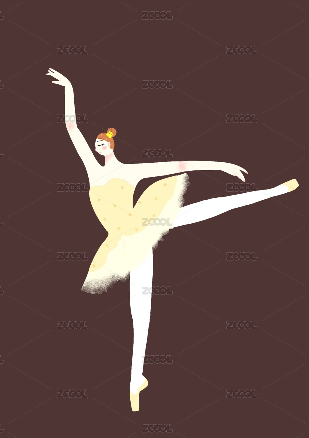 水彩风格小清新女孩跳芭蕾舞插画人物元素