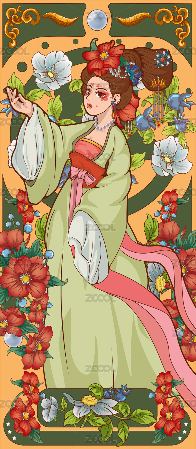 卡通二次元星座花神雪花孔雀装扮的复古少女