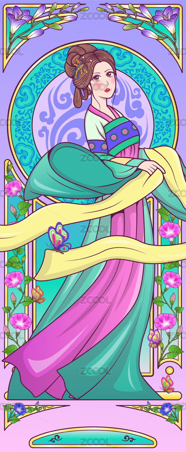 穆夏风,宫廷插画,薰衣草,包装插画,矢量