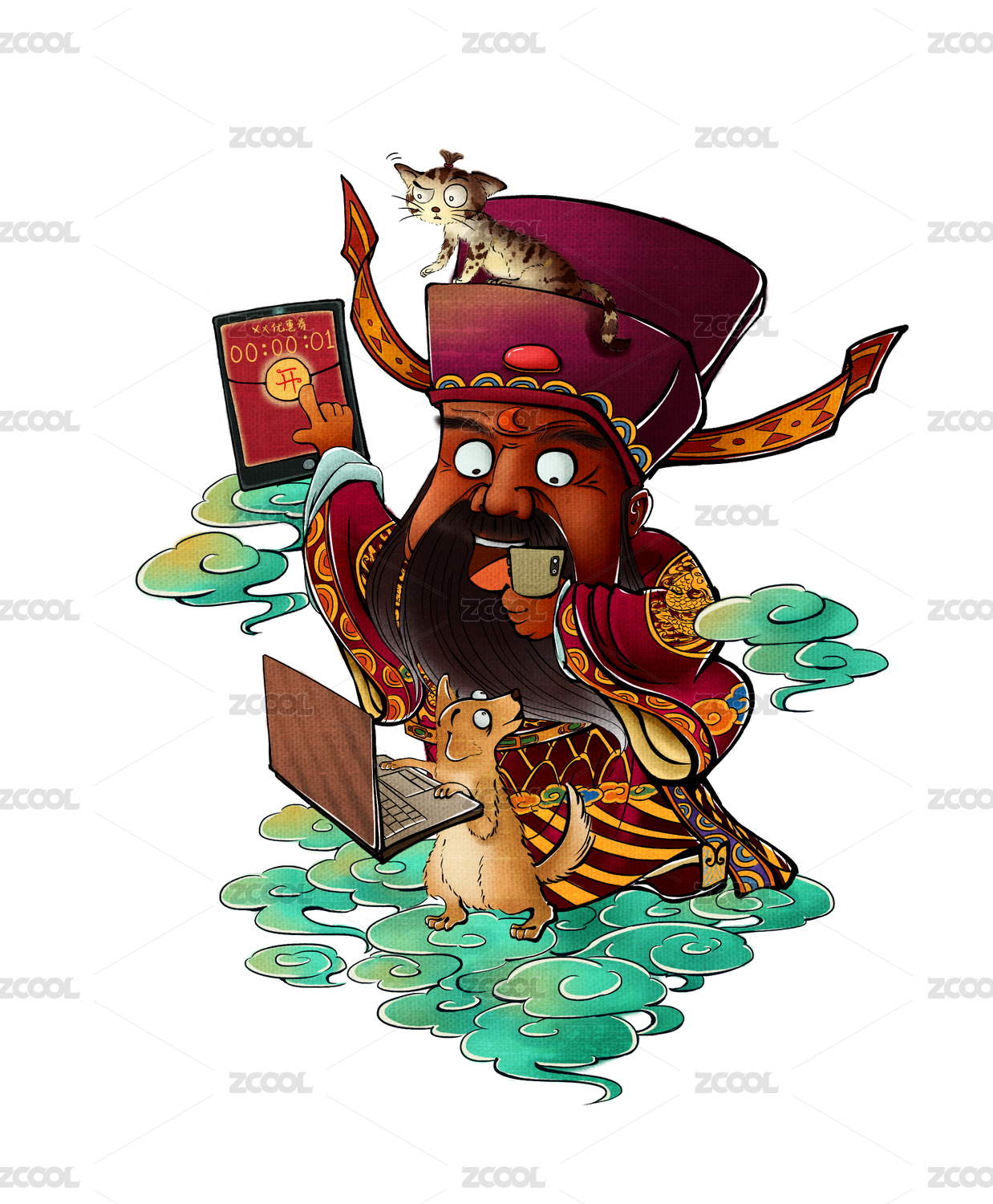五路财神西路关羽龙年喜庆吉祥国风卡通