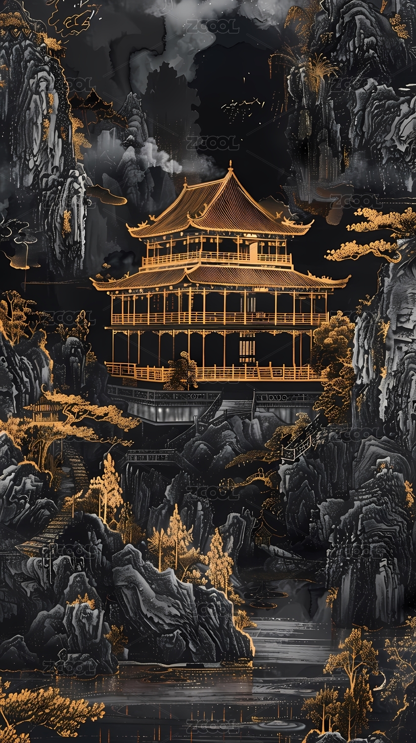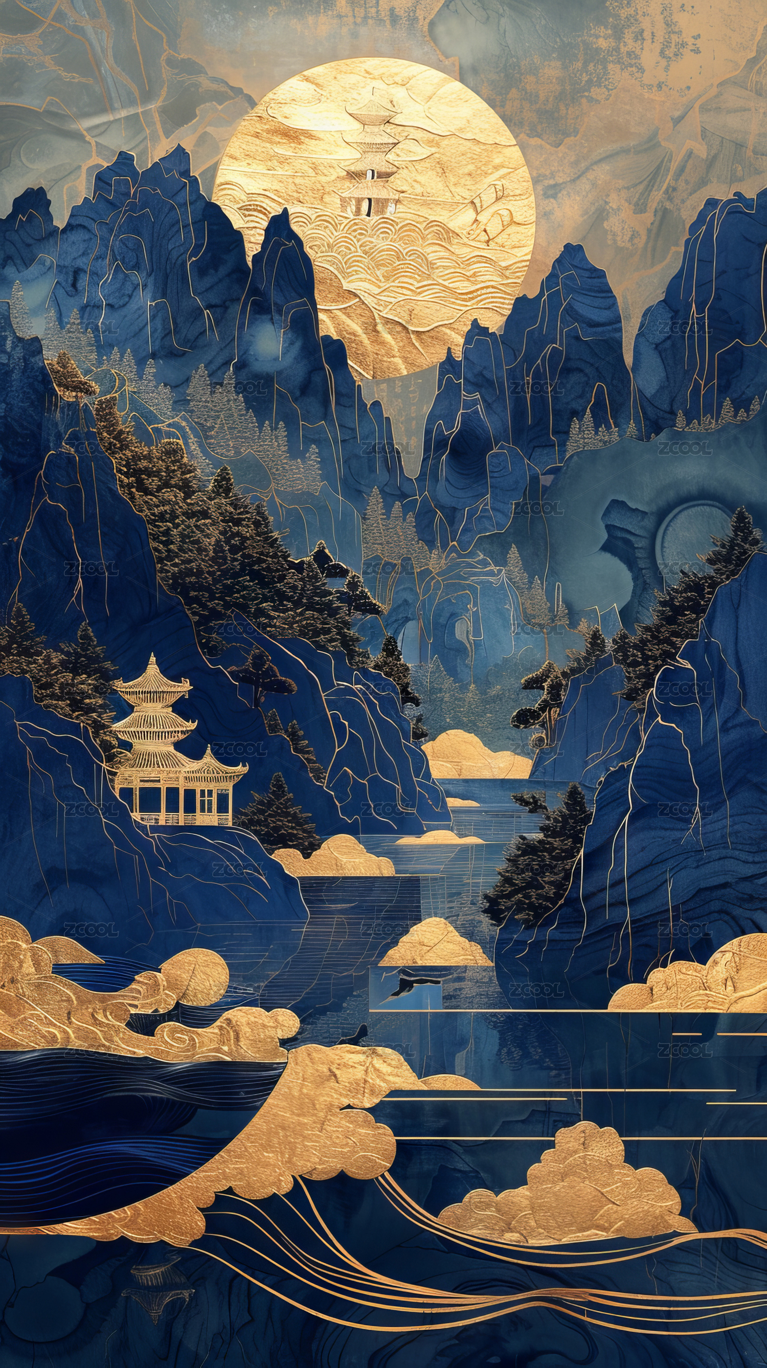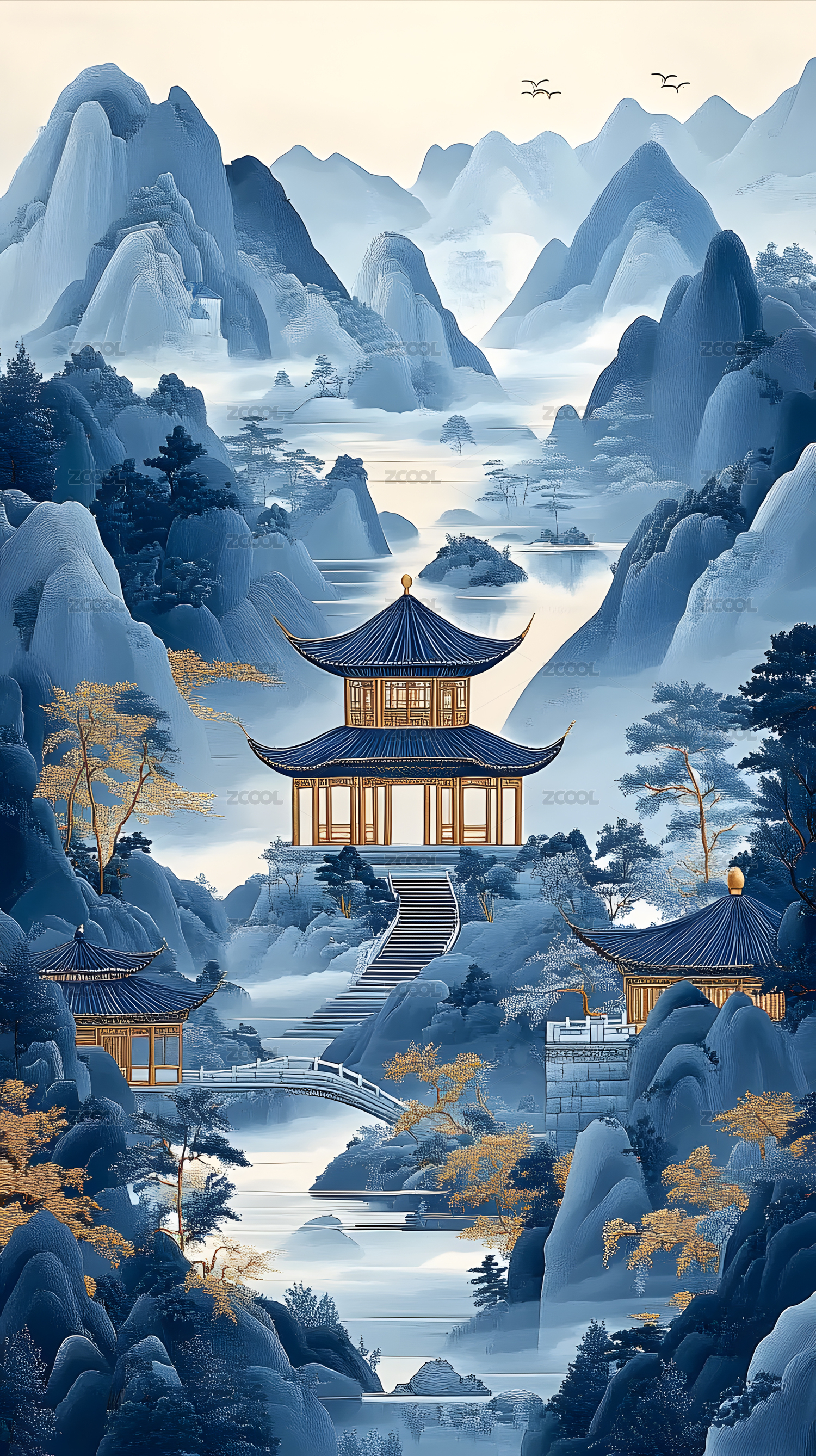 插画,古风,国风,意境,抽象,写意,自然,水墨,山水,云雾