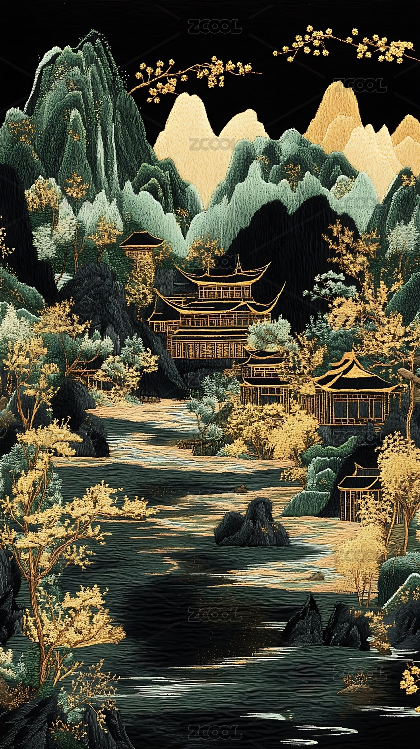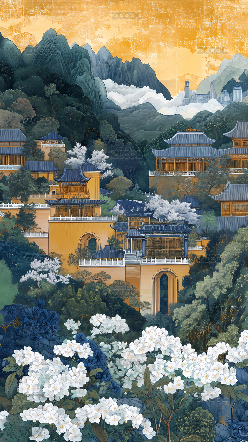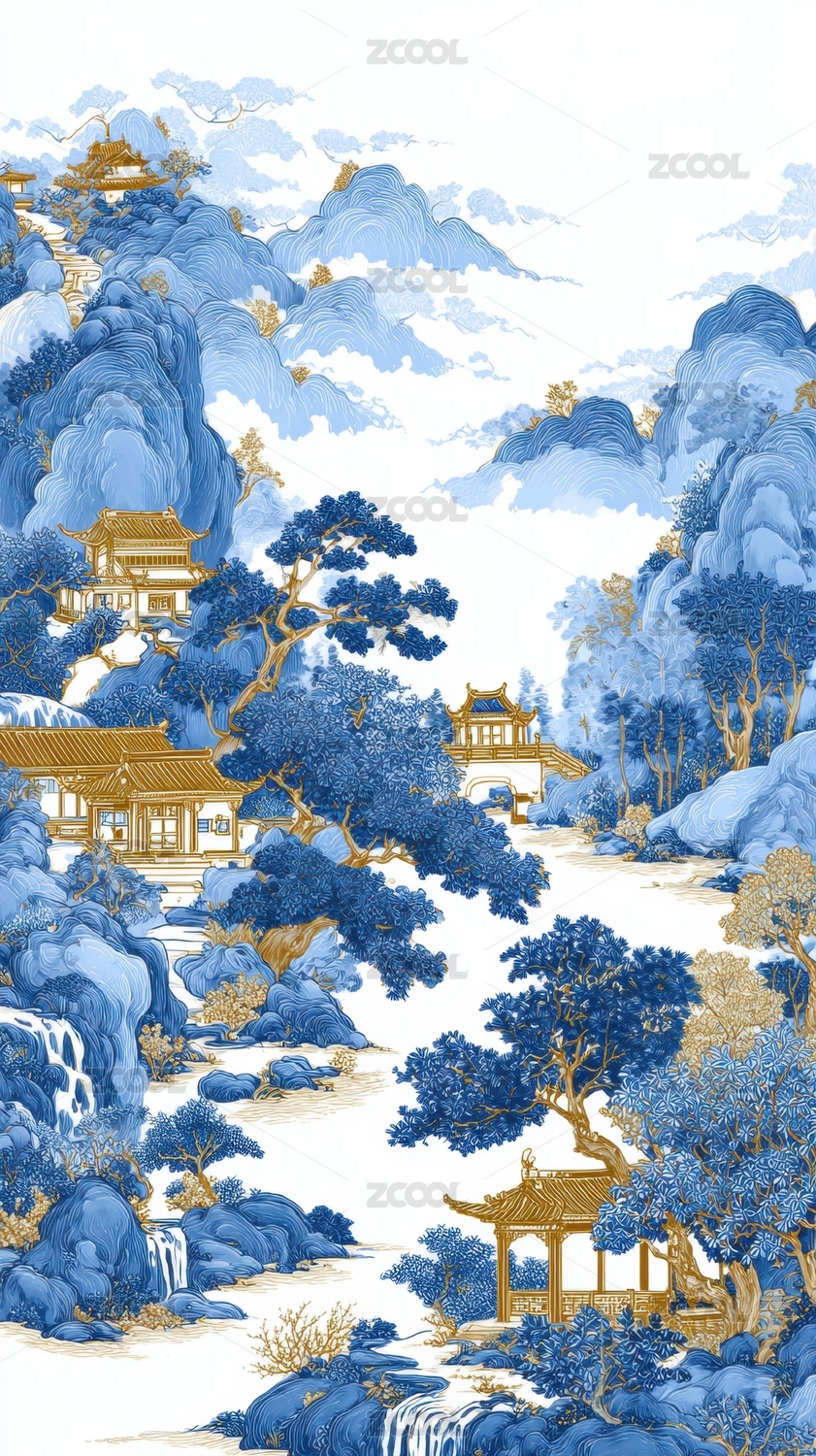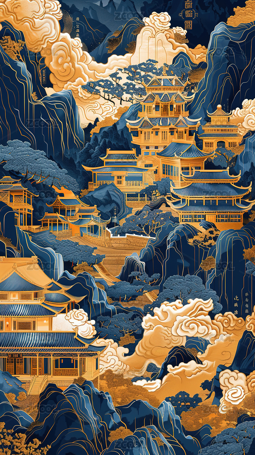 插画,古风,国风,意境,抽象,写意,自然,水墨,山水,云雾