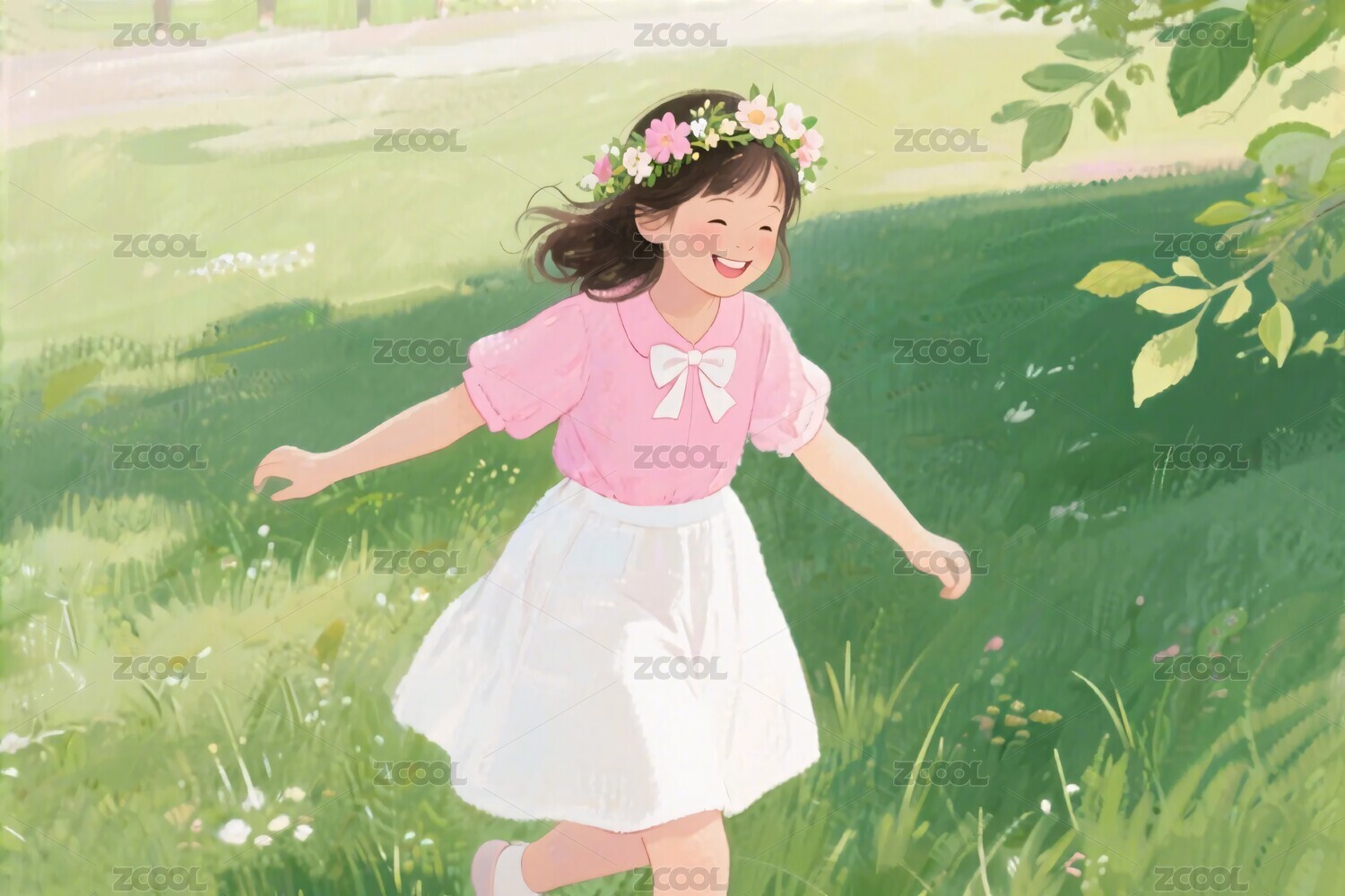 草地里的女孩插画