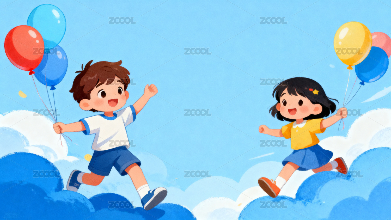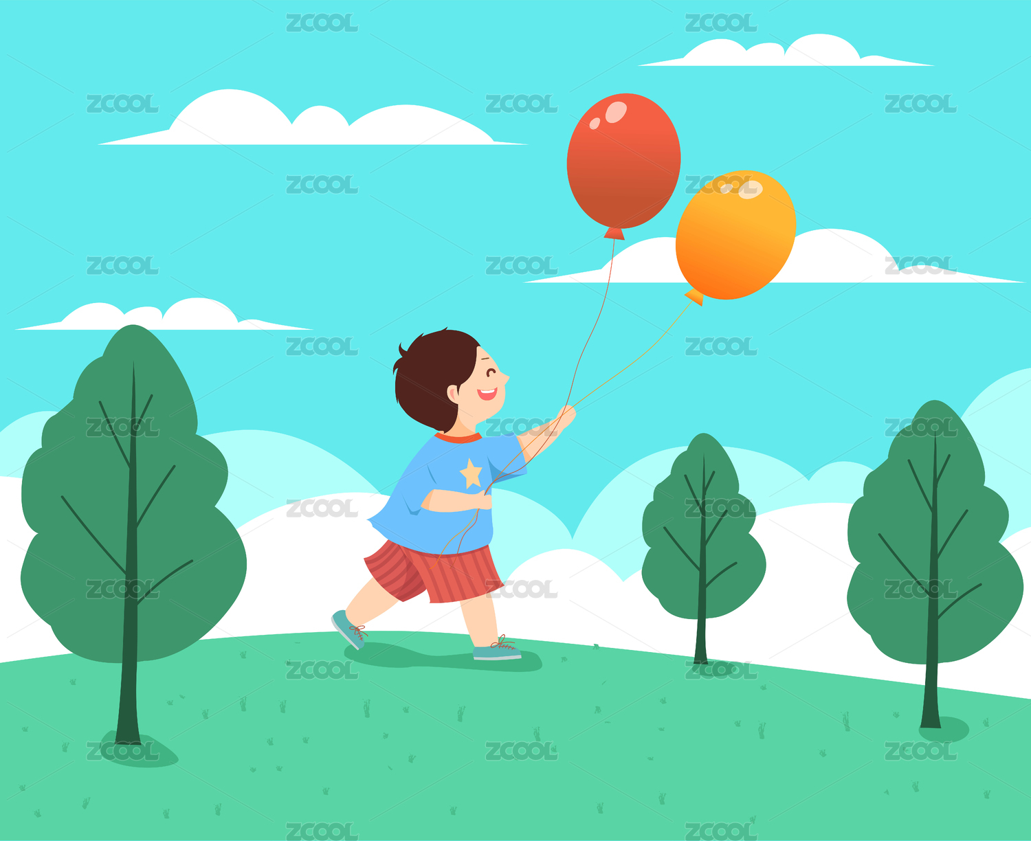 卡通儿童放飞气球欢乐场景
