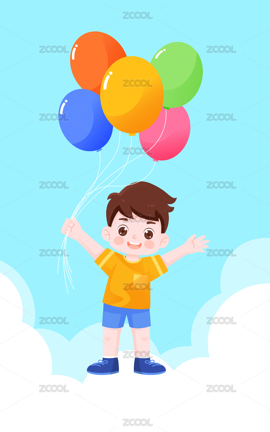 扁平插画风格男孩手拿气球