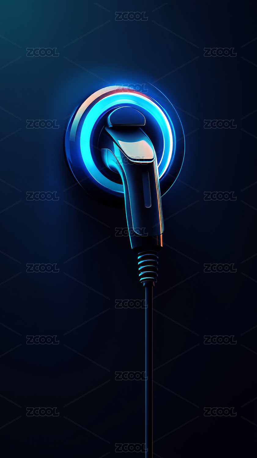 黑底充电桩充电的电动汽车3D卡通立体插画