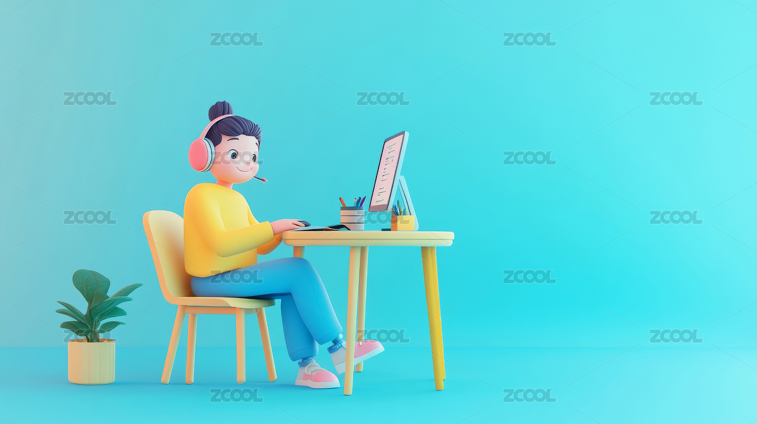 一个穿着蓝色衬衫的人坐在简约的桌子前