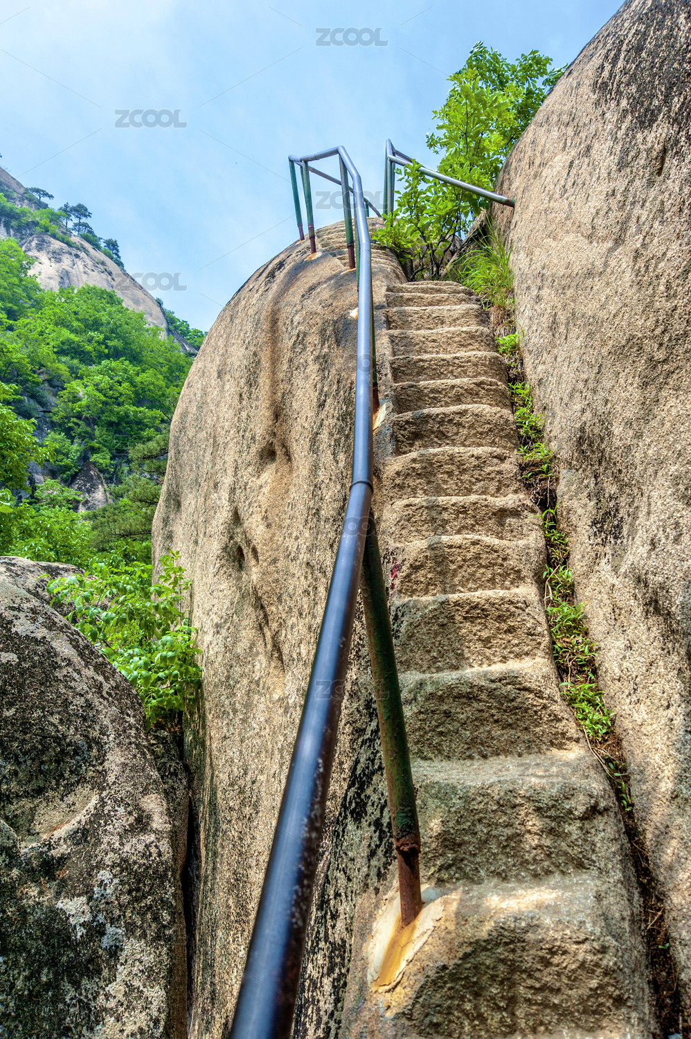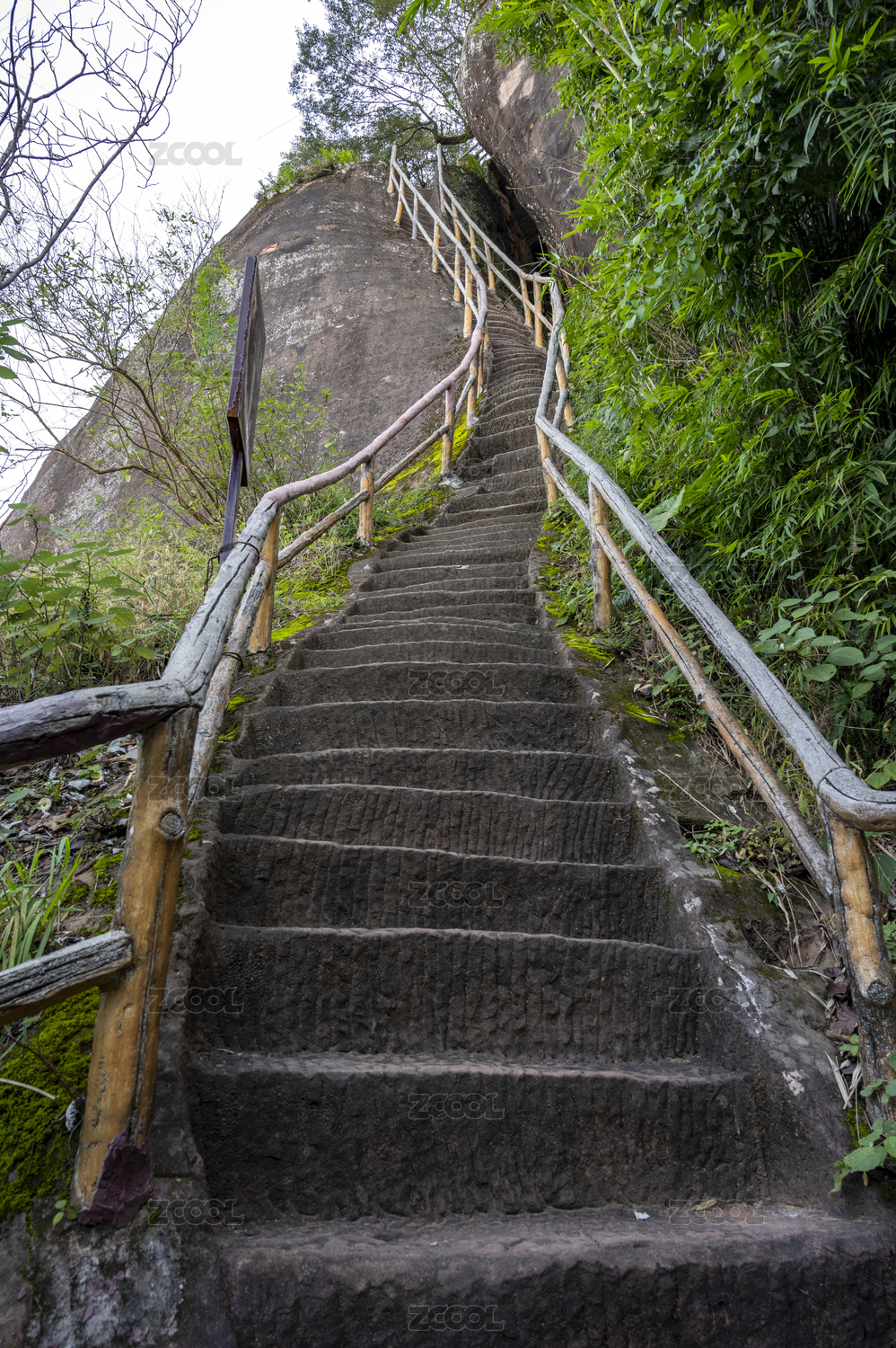 中国福建省武夷山,大王峰景区中崎岖陡峭的登山道