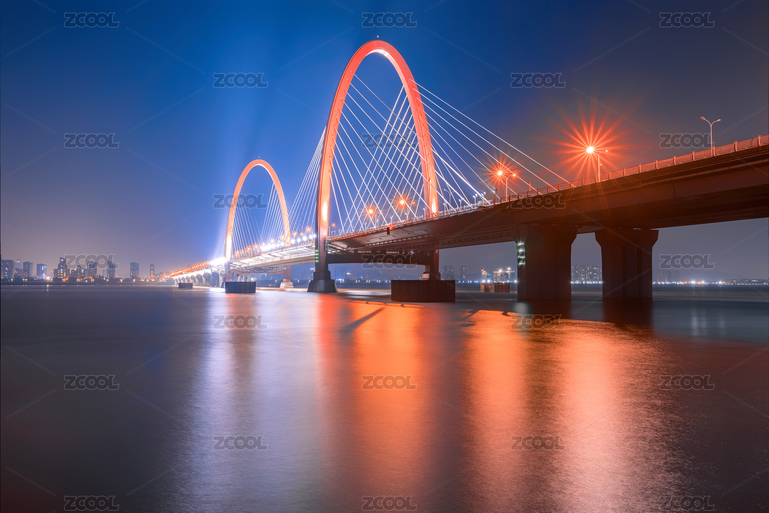 中国江西省南昌市赣江上的大桥和沿岸建筑