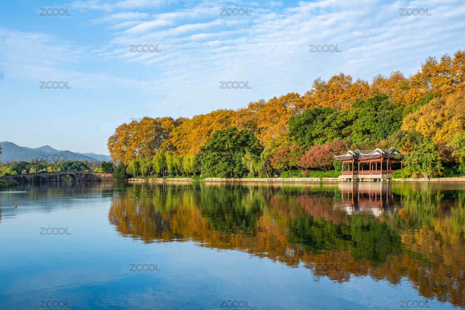 浙江省杭州市西湖名胜风景区秋色红叶风景高清大图