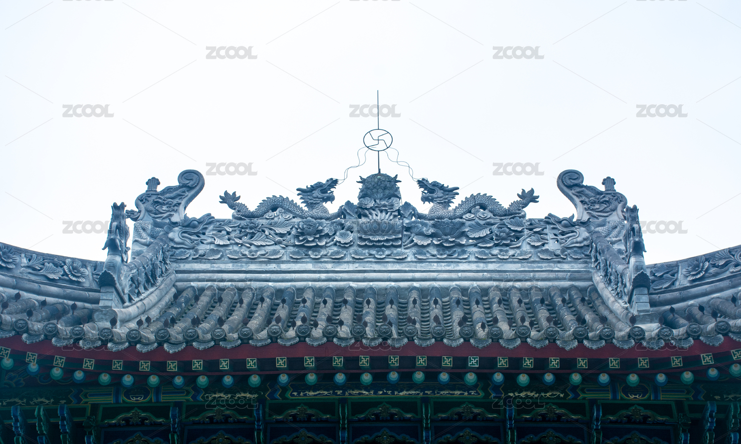 甘肃平凉崆峒山法轮寺寺庙古建筑屋檐上雕刻
