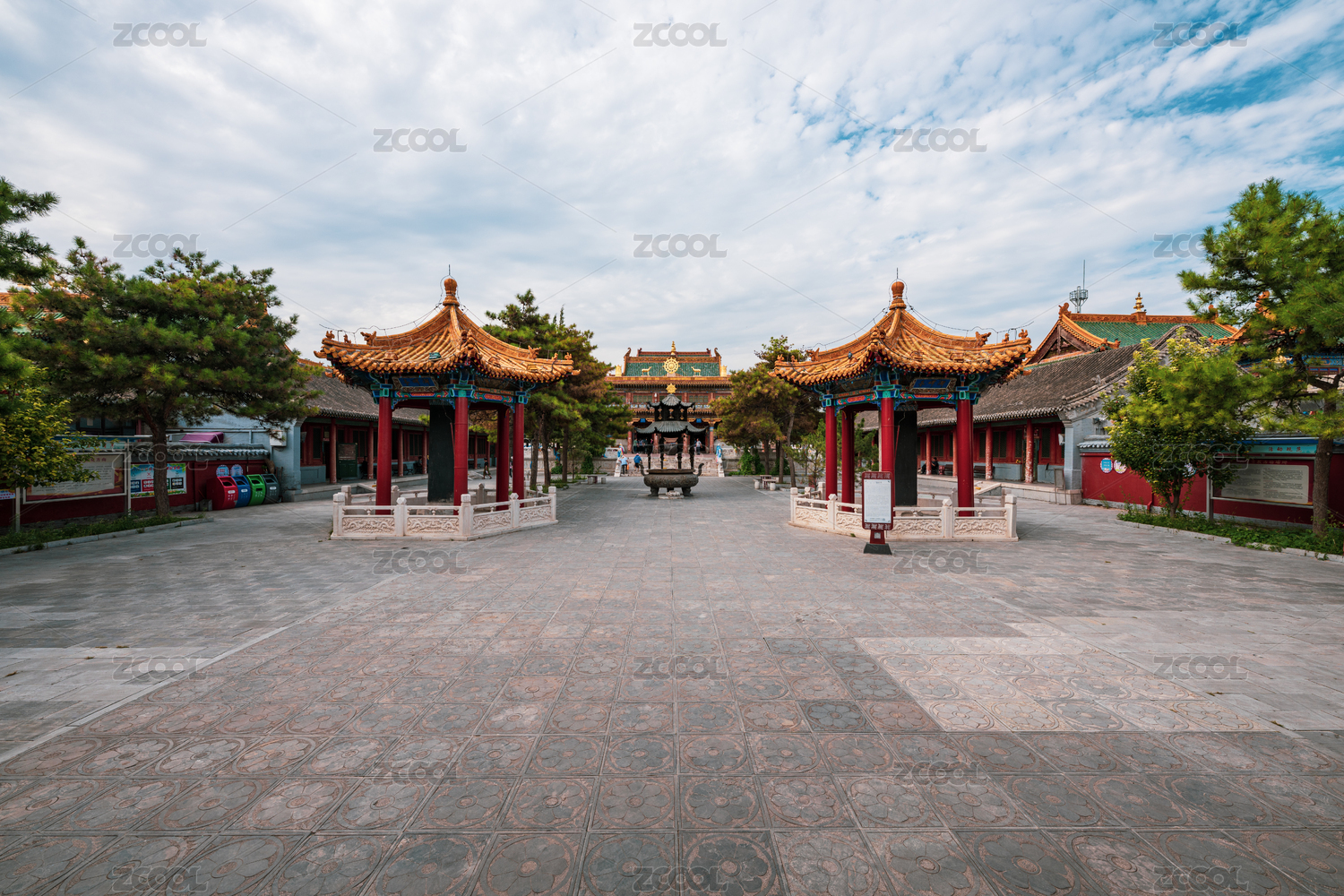 中国山东省寿光市林海生态博览园宁国寺广场石拱桥后的殿宇建筑