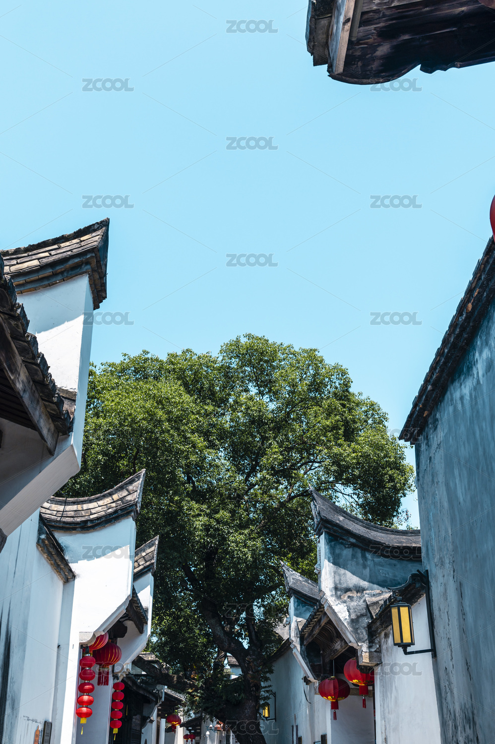 浙江金华古子城 阳光斑驳 树影映在白墙上