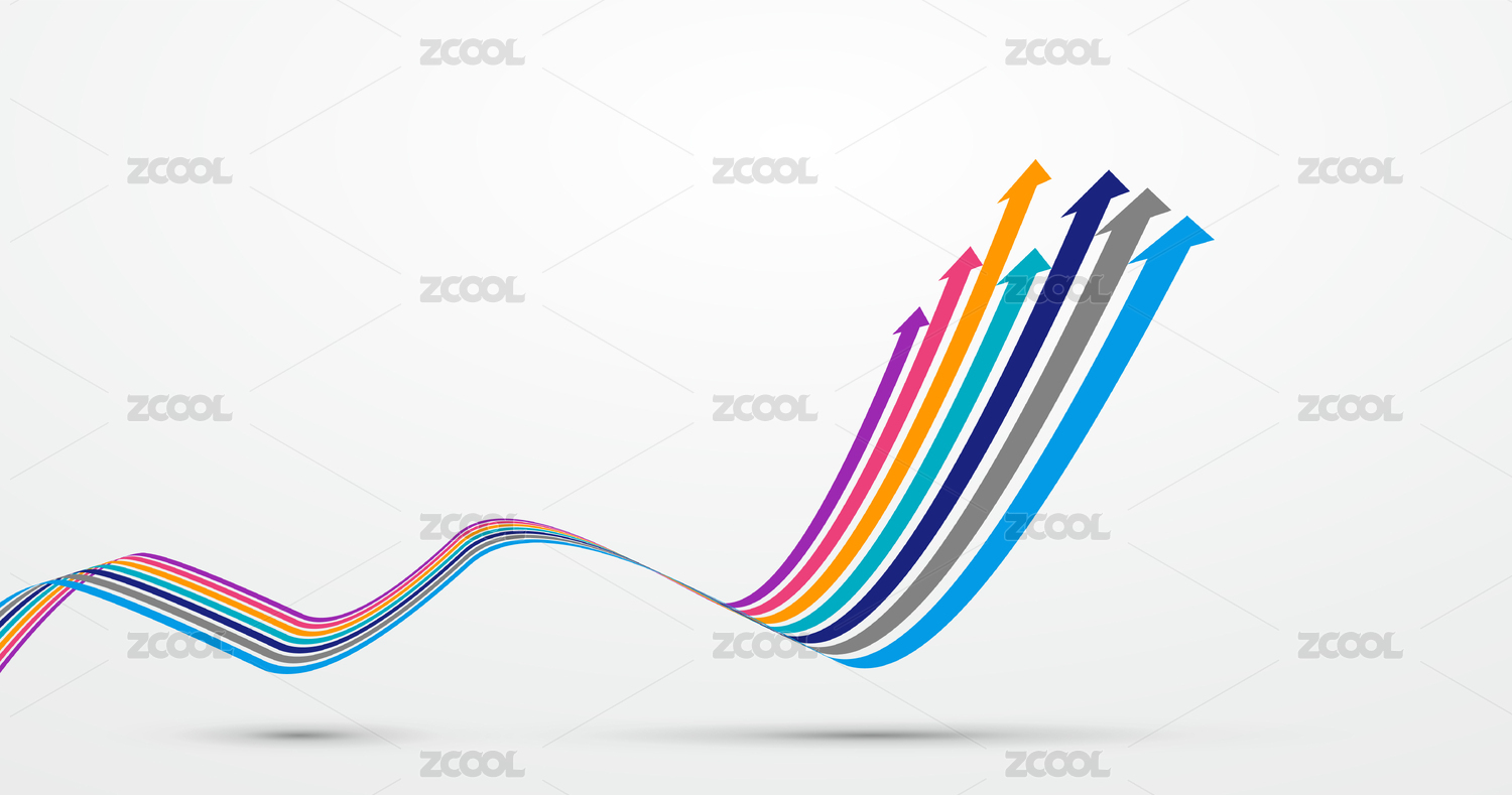 积极向上的力量、波段形箭头组成的彩色线条,杂志海报背景图。