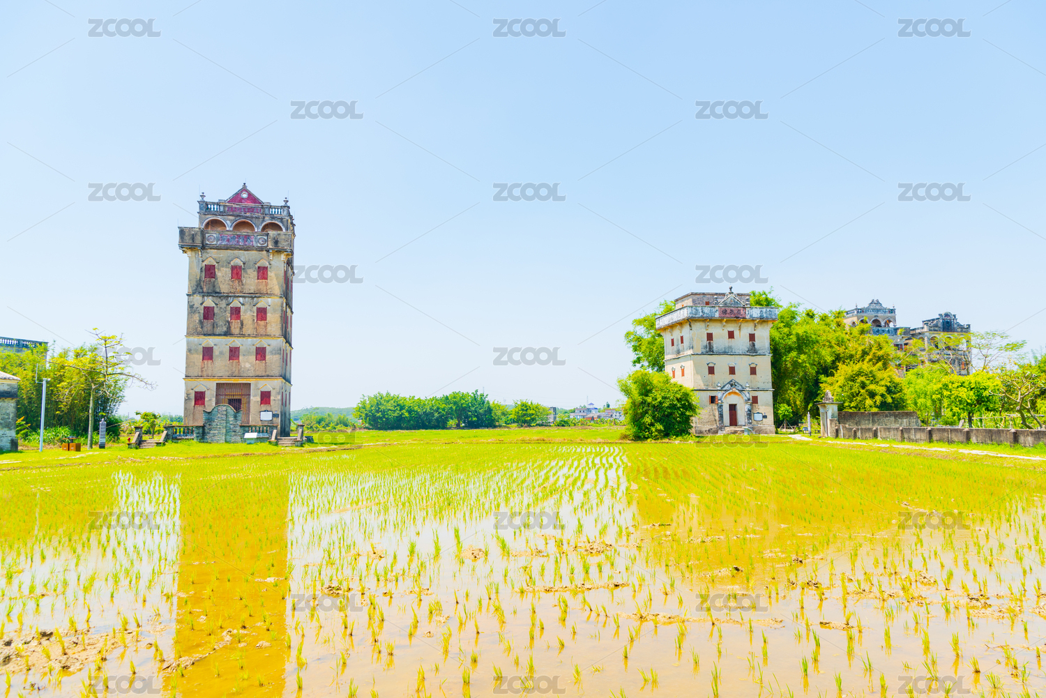 蓝天,晴天,天际线,树,绿色,小路,阳光,建筑,著名景点,房屋