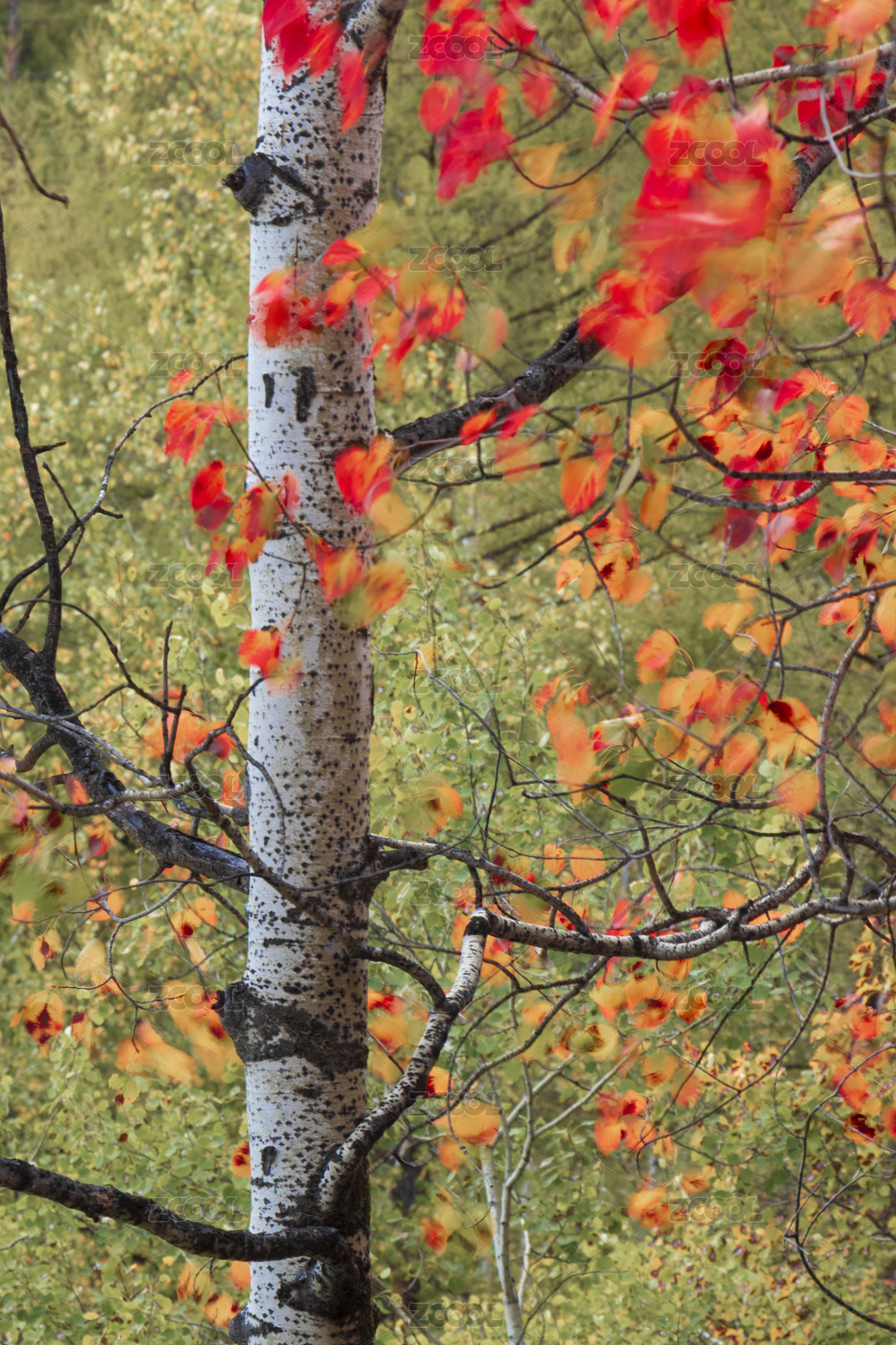 中国大兴安岭秋风吹动杨树彩色的叶子