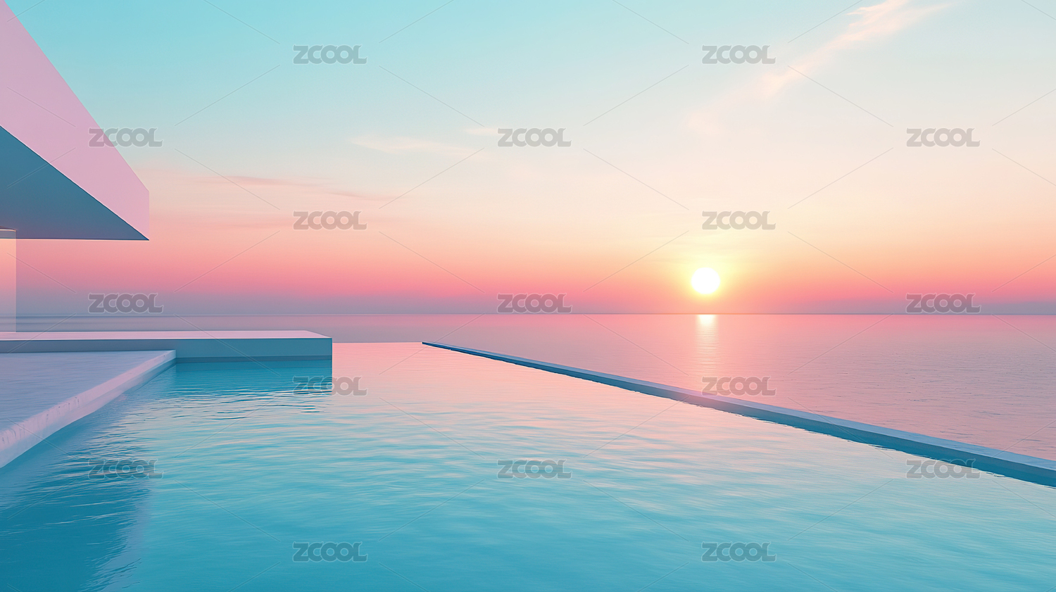 极简建筑海边日落美景