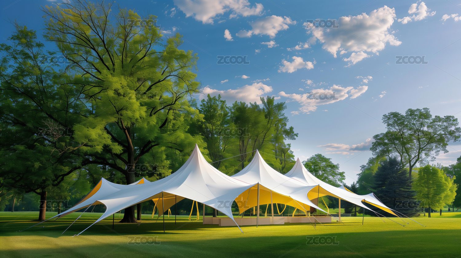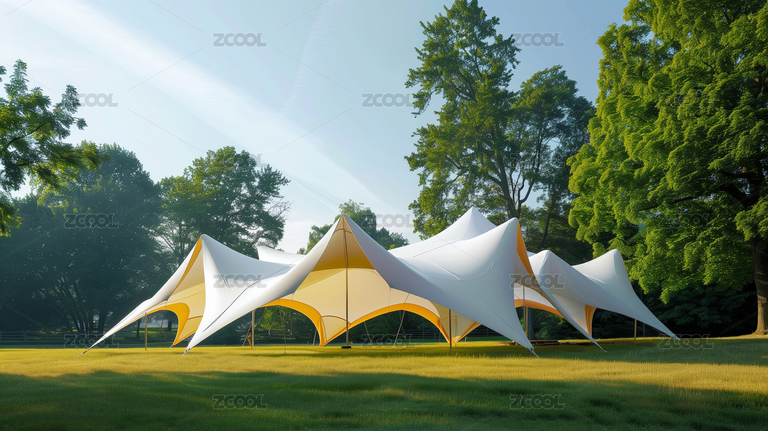 户外公园里的天幕帐篷
