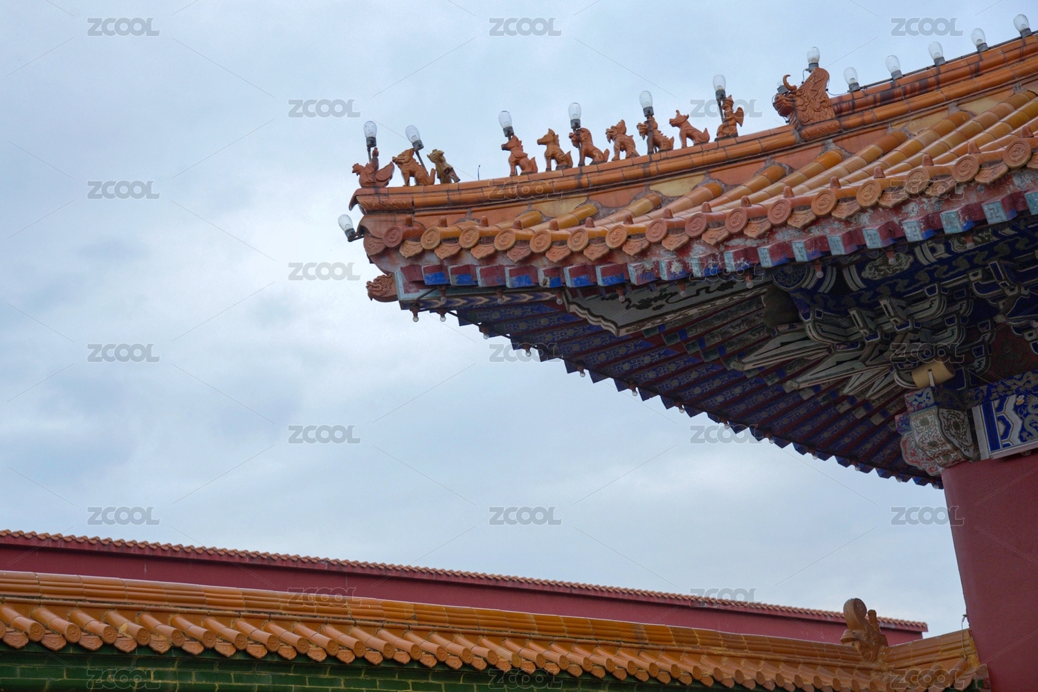 中国北京故宫东方古代建筑屋檐上的脊兽