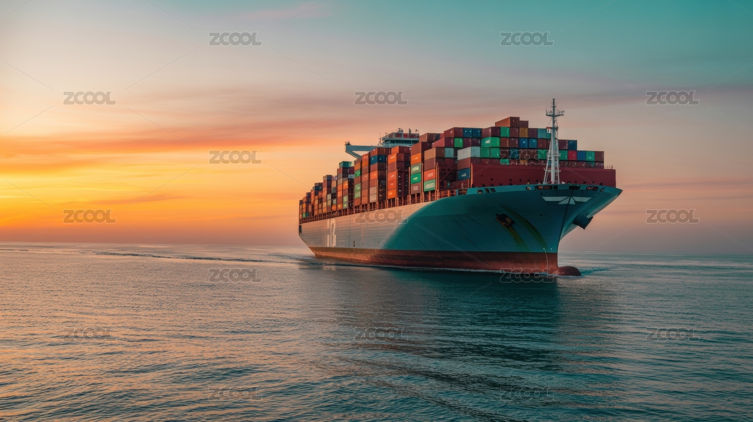 日落时分的集装箱货轮