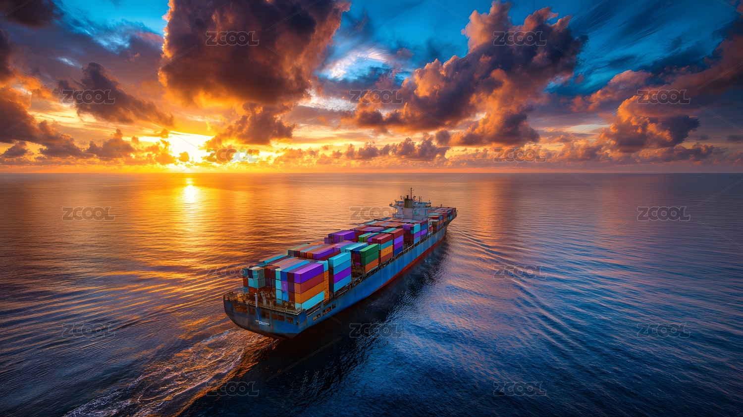 海运货船夕阳