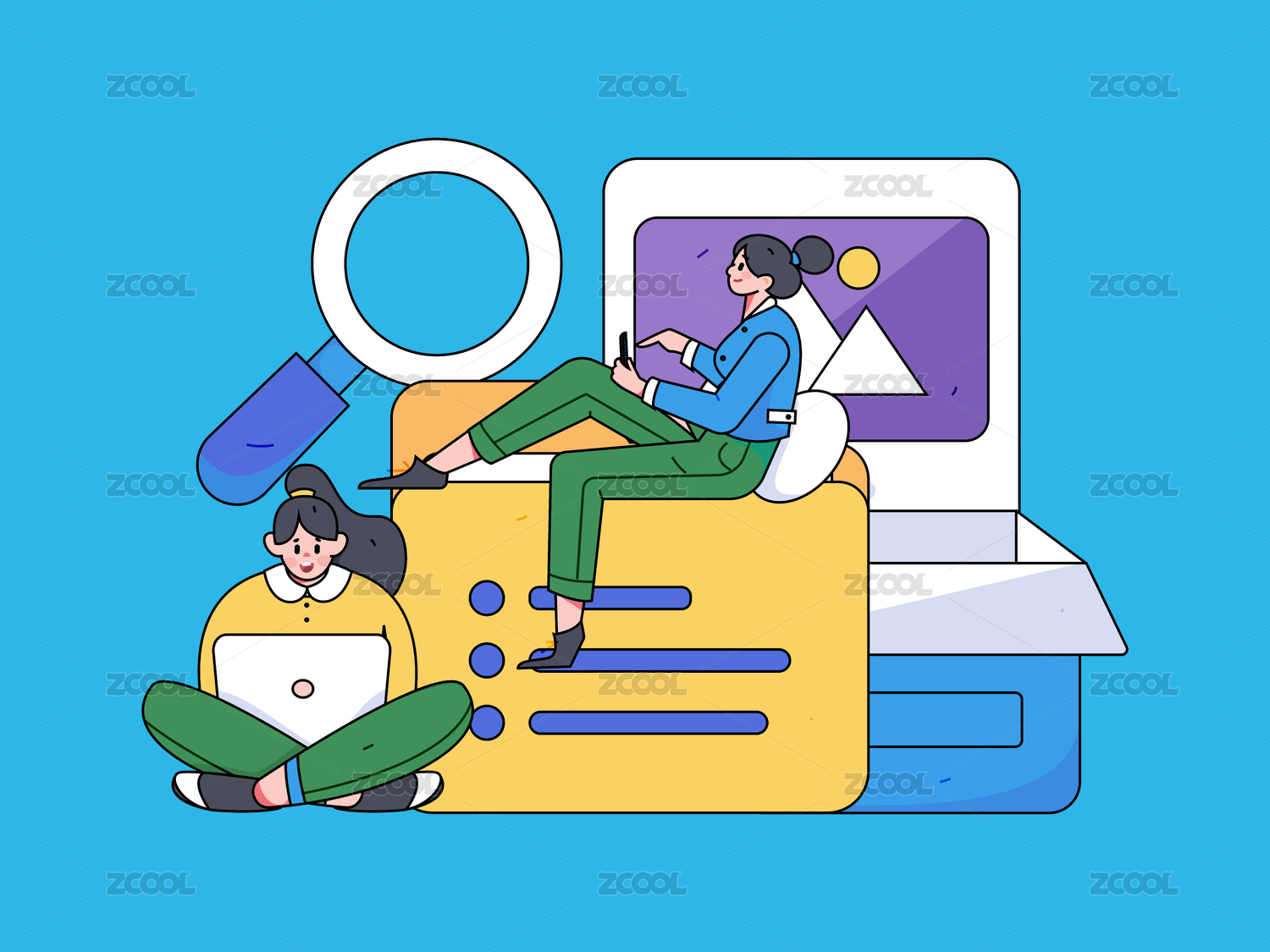商务人物运营工作场景扁平矢量插画