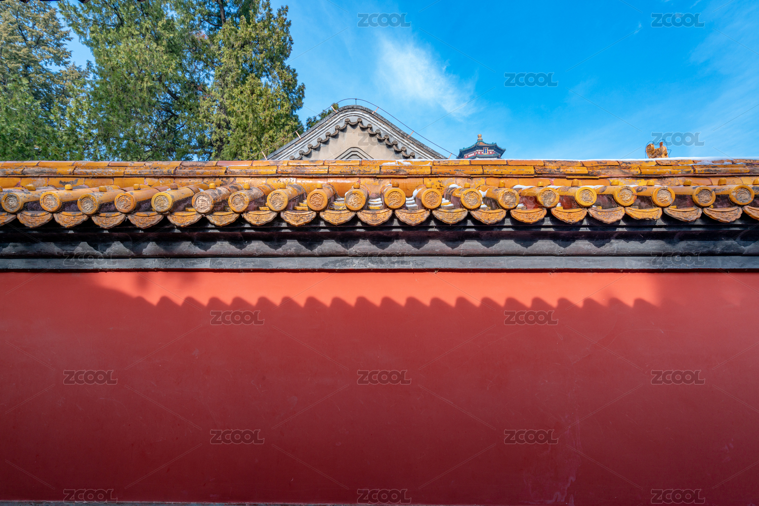 红墙,黄瓦,飞檐,古建筑,建筑细节,砖瓦,墙体,纹理,色彩,古色古香