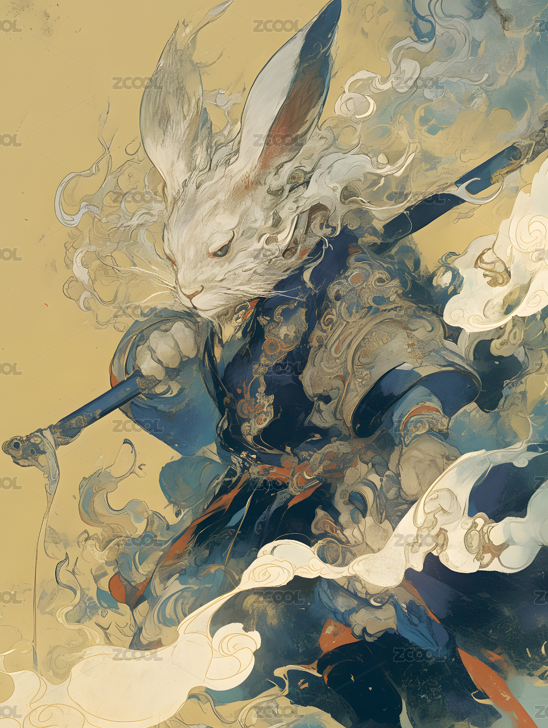 AIGCFG,中国风,插画,中式风格,国潮风,国风,兔子,美女,兔