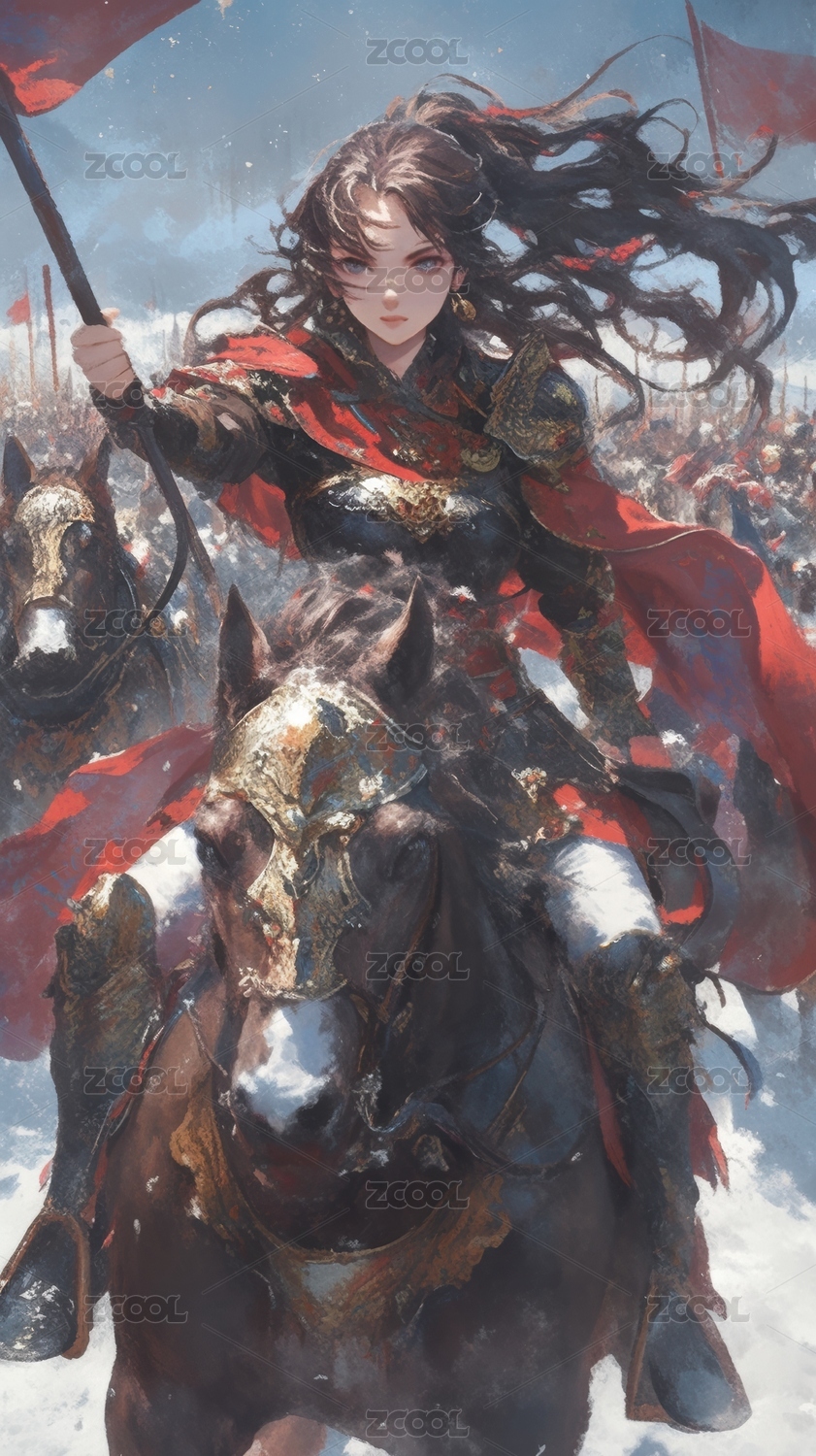 AIGCFG,国潮风,插画,卡通,马,骑马,男人