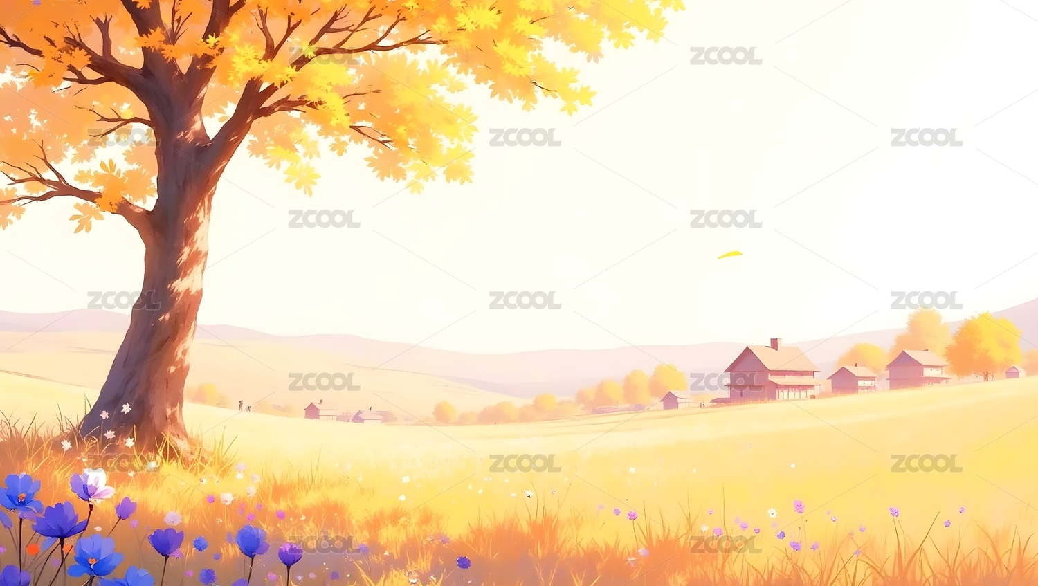 AIGC202402,秋天,麦田,麦子,卡通,插画,丰收,人,小麦