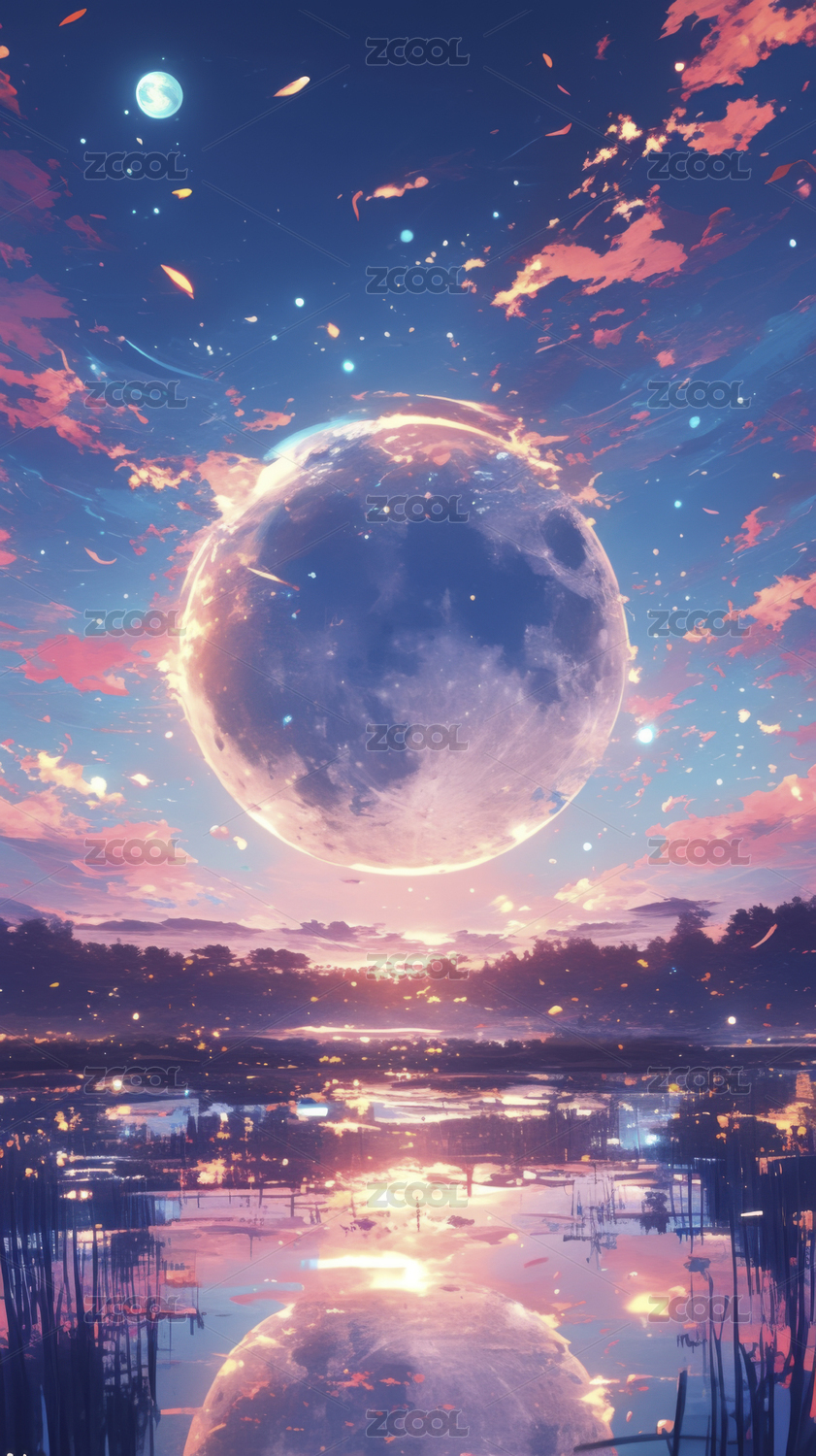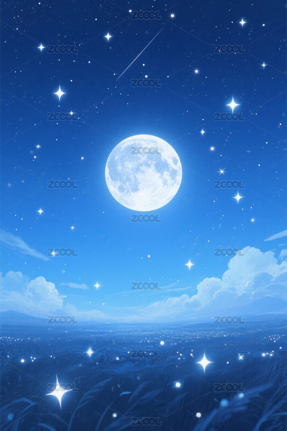 AIGCFG,中式,中国风,国潮风,插画,卡通,月亮,风景,节日,中秋节