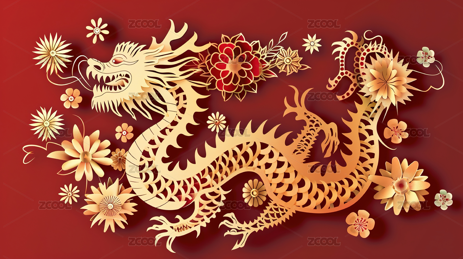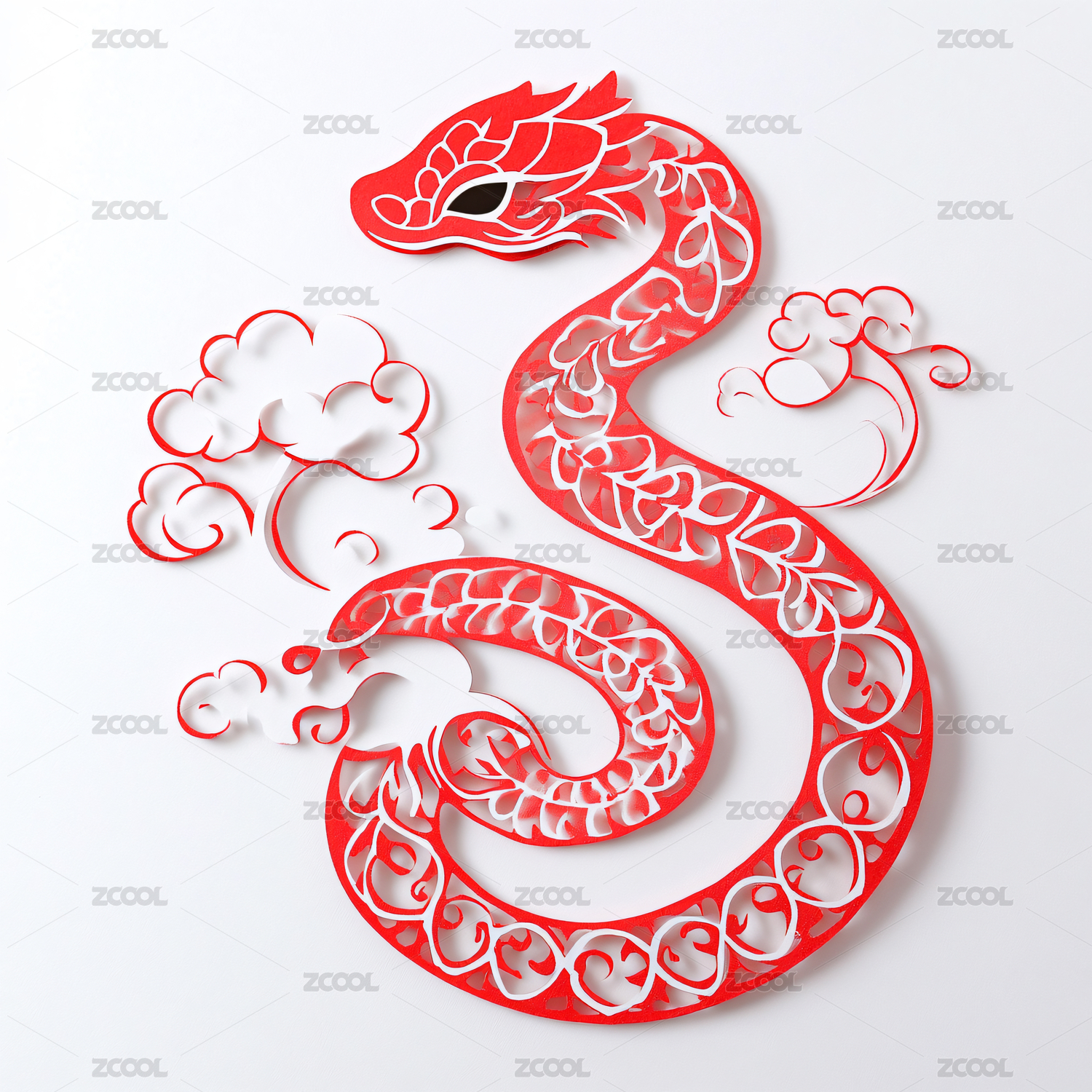 中国风,国潮风,剪纸,折纸,龙,龙抬头,生肖龙,龙年