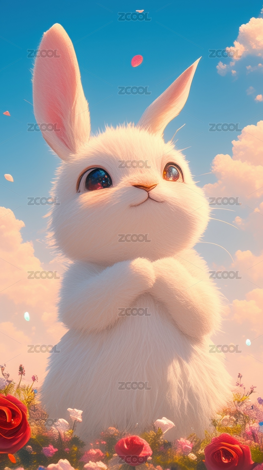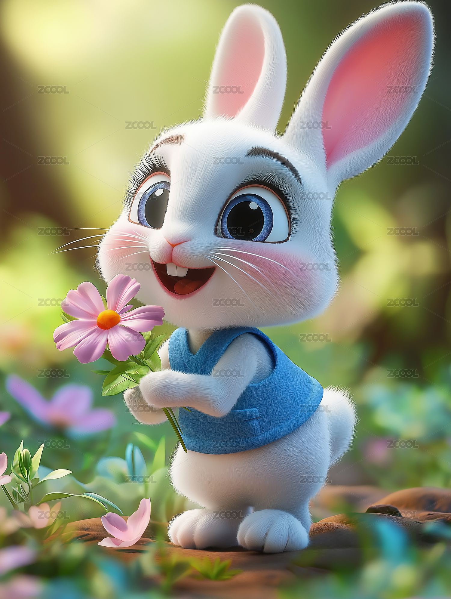 粉色兔子可爱唯美野生动物3D卡通插画壁纸