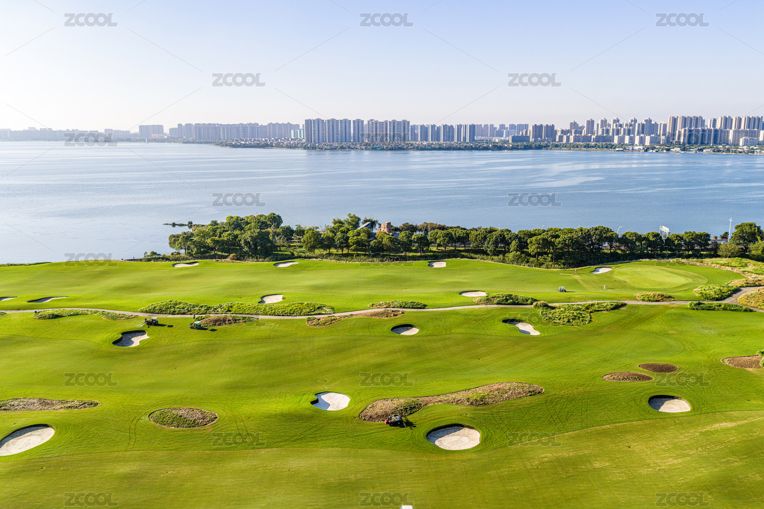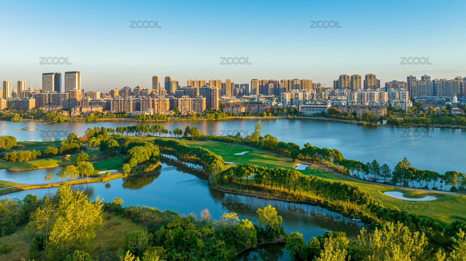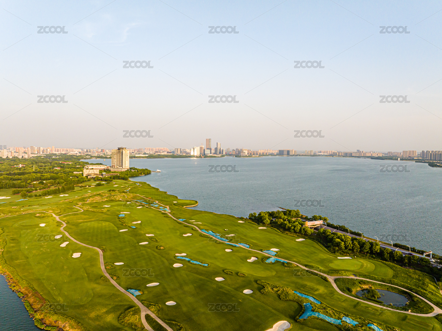 中国江苏清晨的苏州金鸡湖高尔夫球场