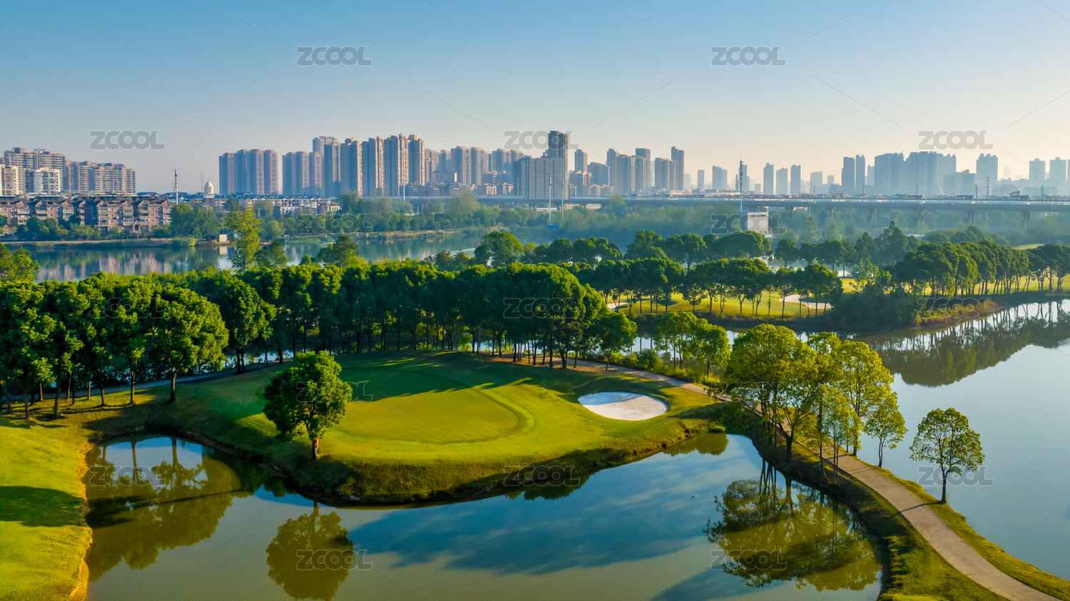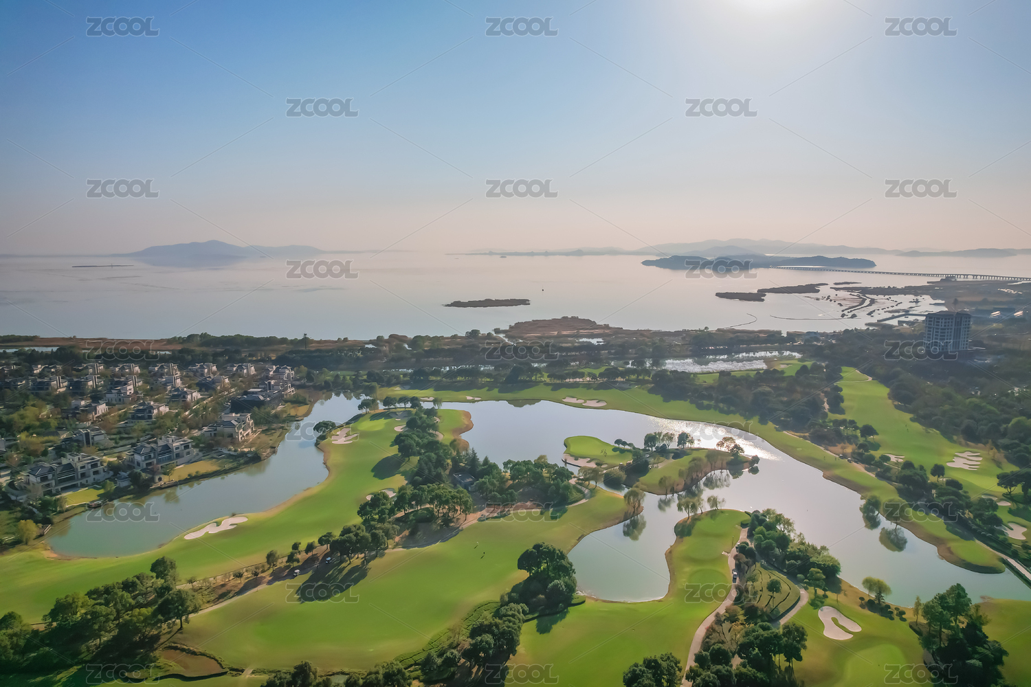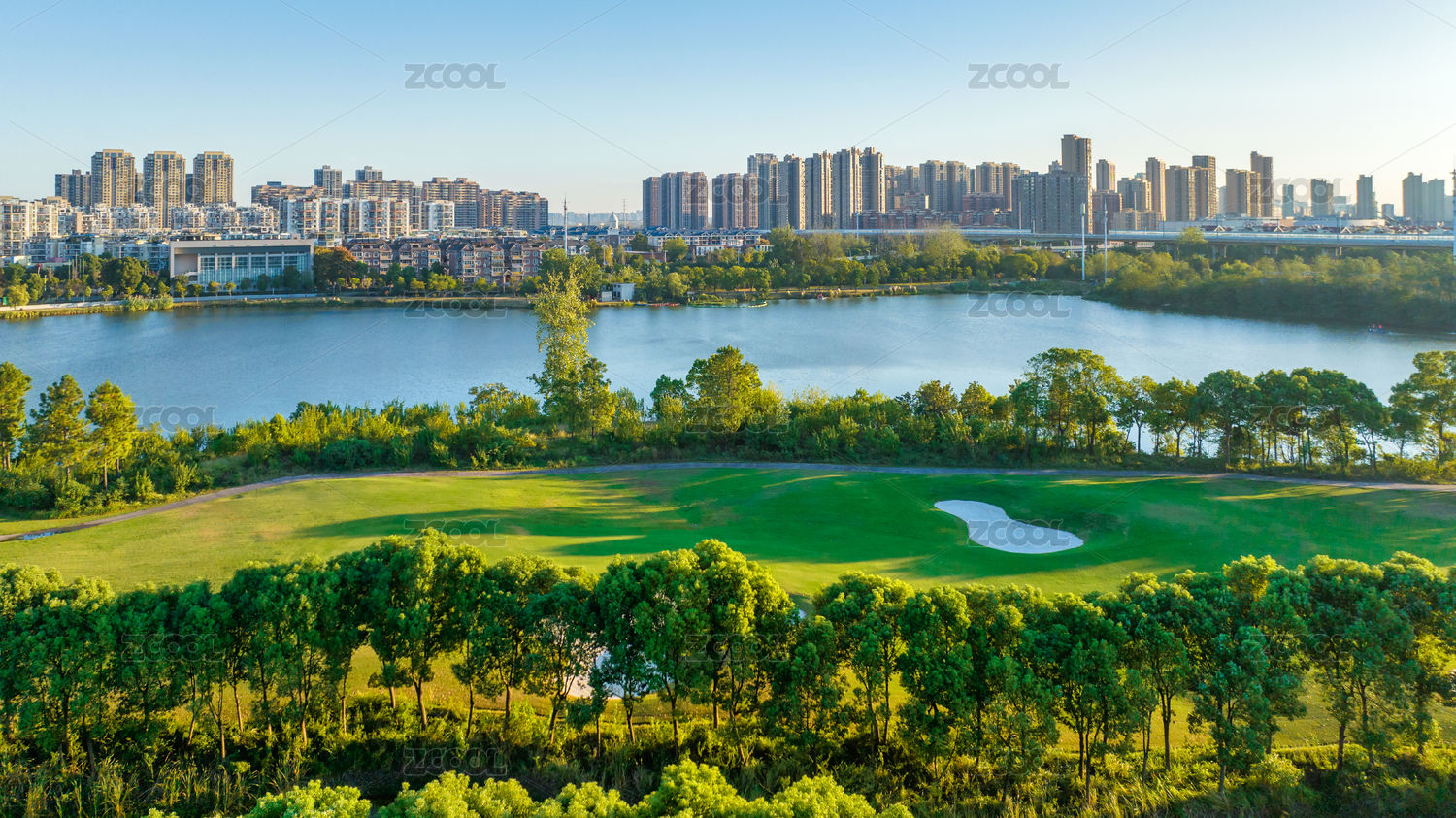 中国江苏清晨的苏州金鸡湖高尔夫球场