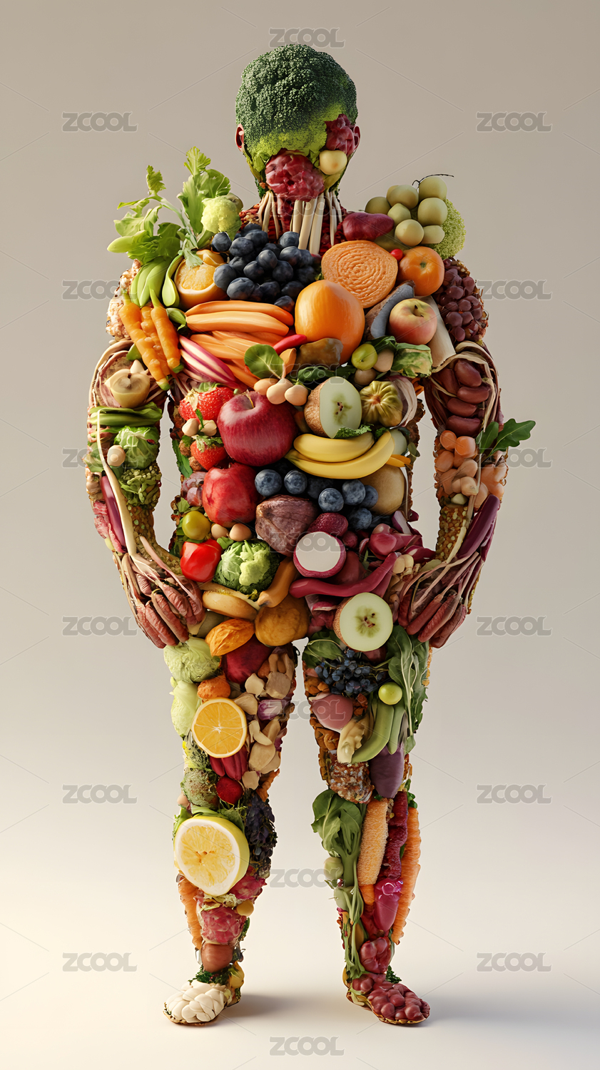 蔬果组成的健康人体