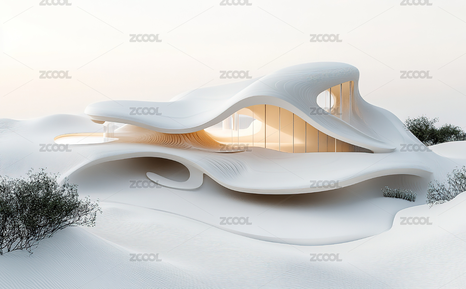 未来主义建筑设计流畅曲线轮廓