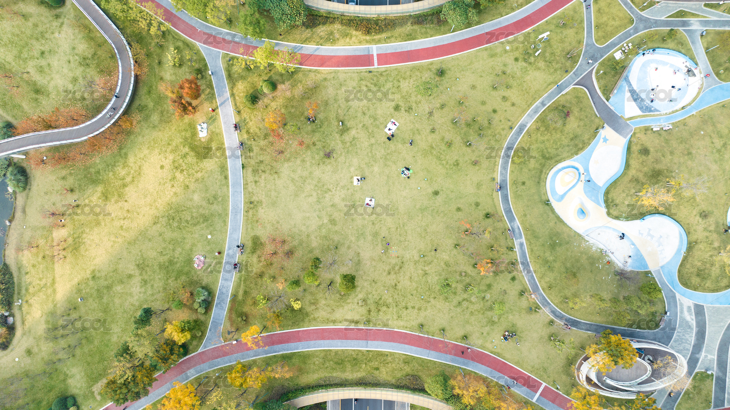 航拍郑州雕塑公园西流湖城市绿地滨湖景观带