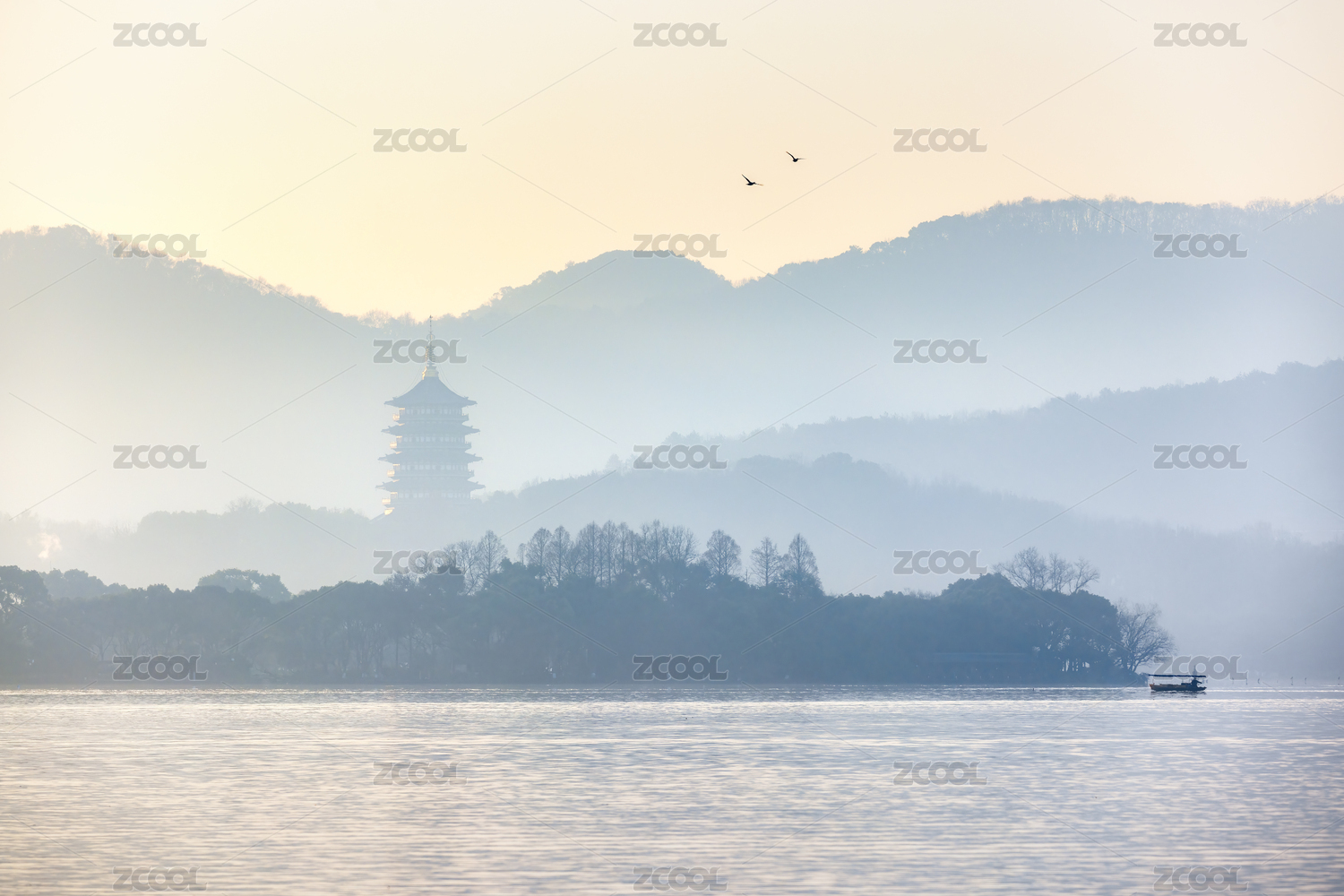 浙江省,清晨,晨雾,云雾,杭州,西湖,景区,雷峰塔,山色,风光