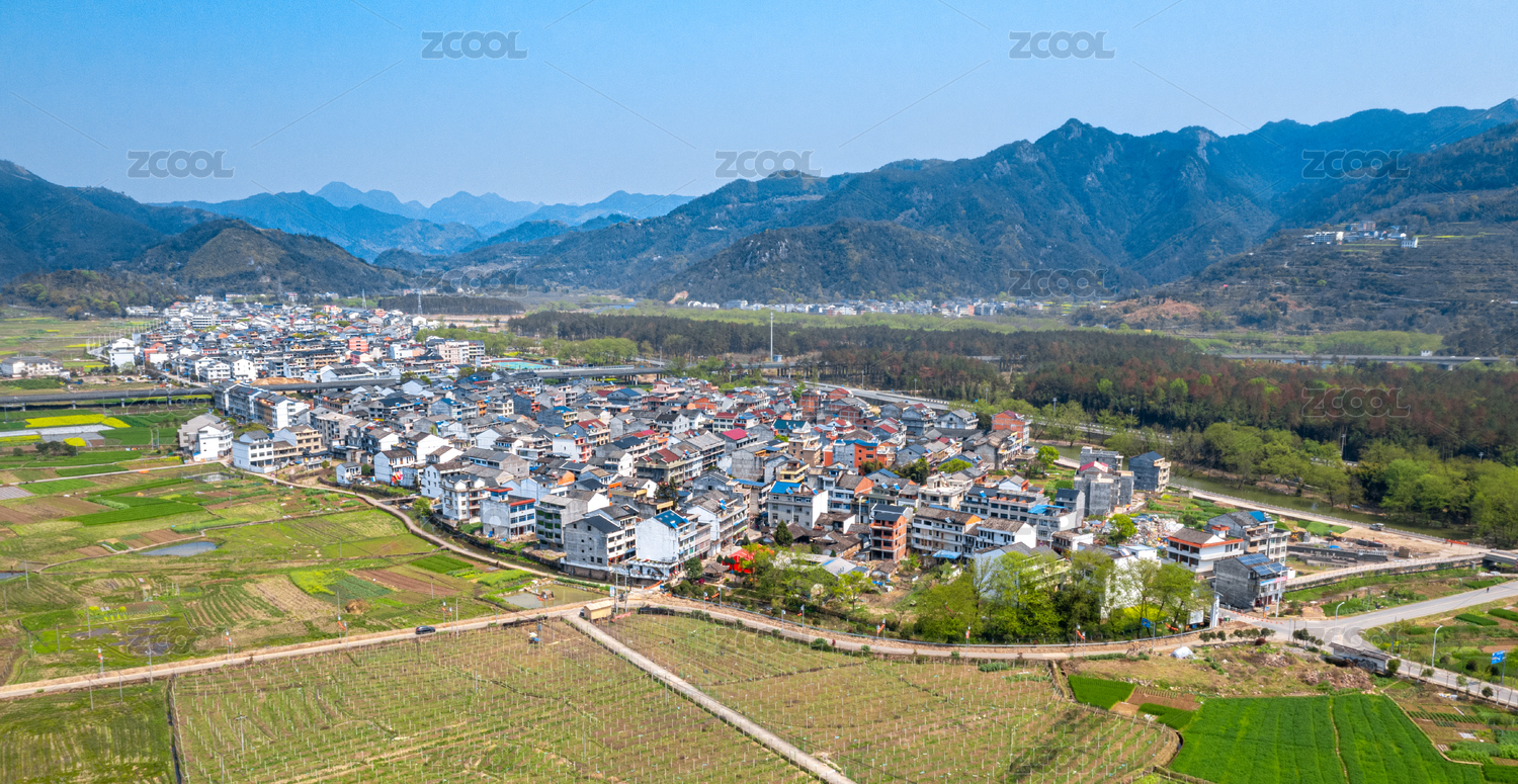 航拍安徽宣城泾县桃花潭风景区老街村庄