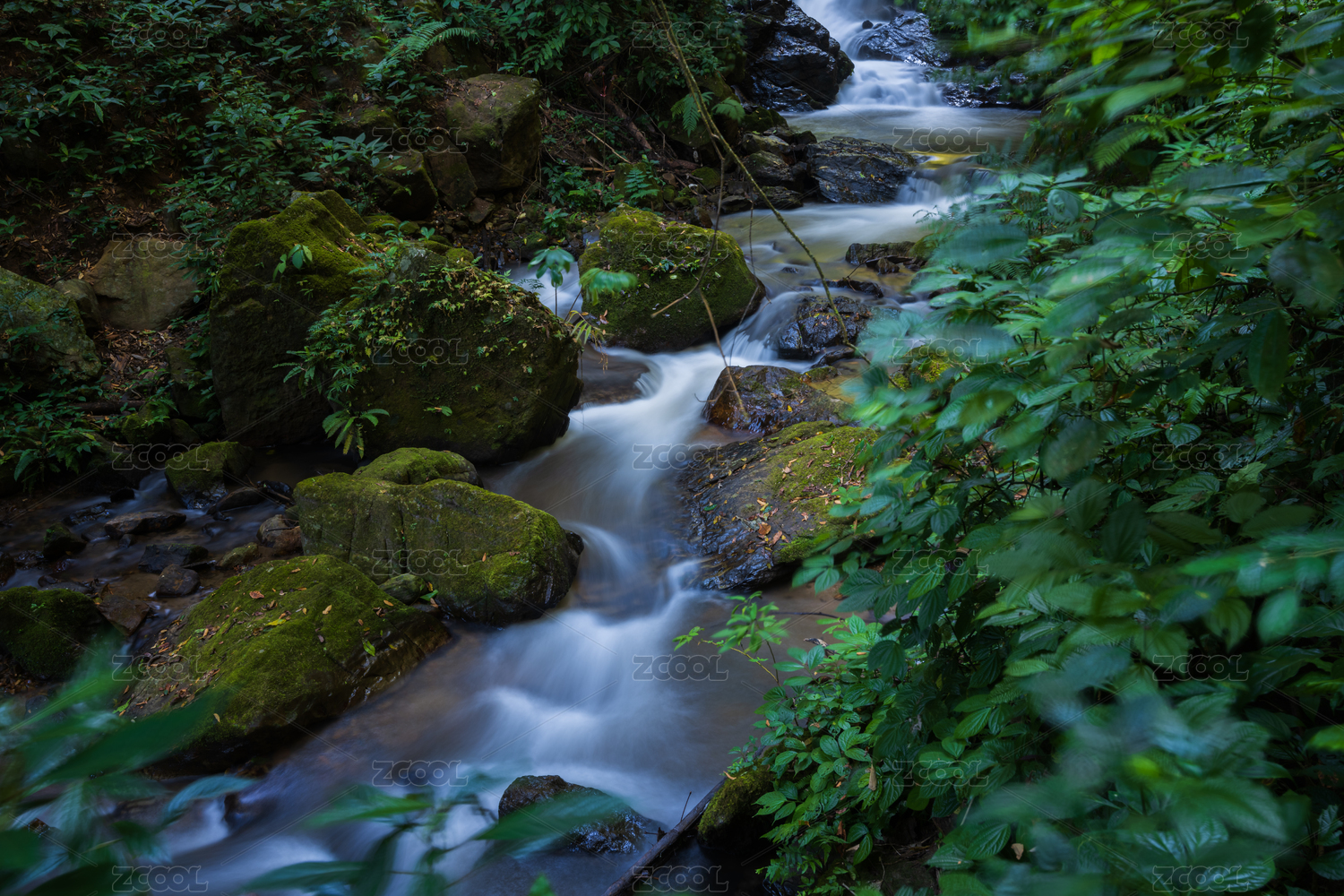 溪流,小溪,山里,森林,流水,石头,苔藓,植物,瀑布,河水