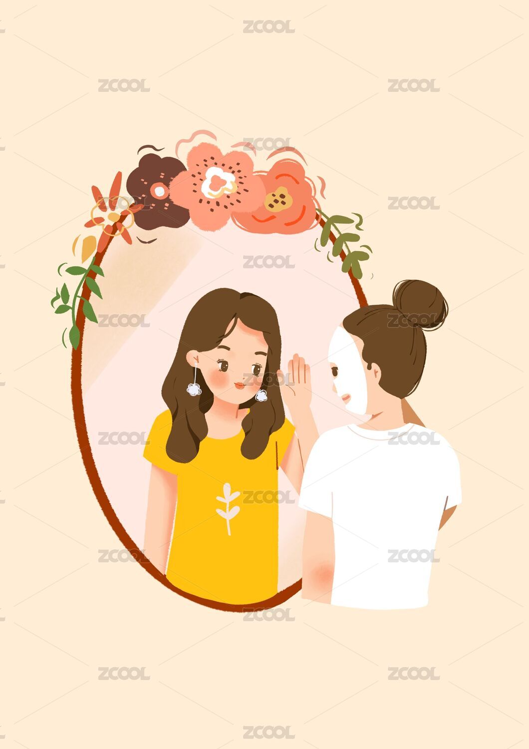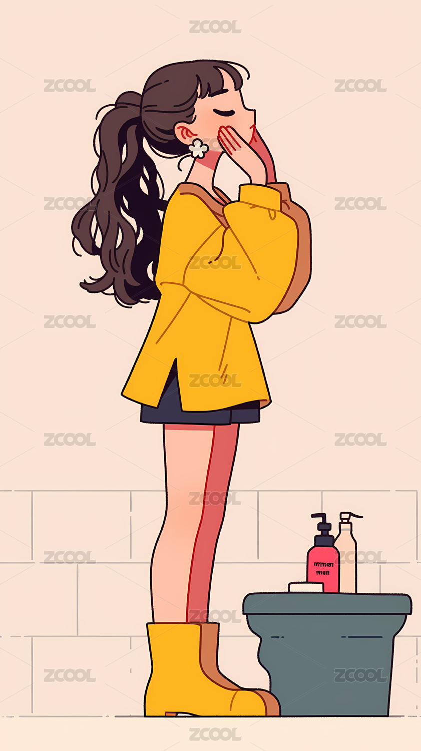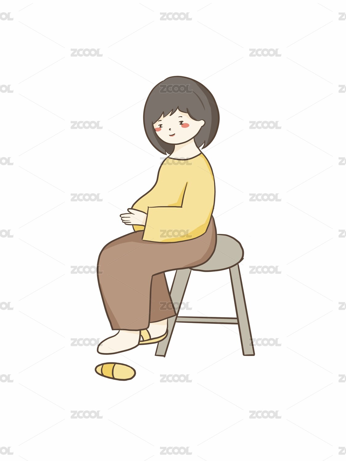 休闲,治愈,清新,简笔画,女孩,女人,插画,生活,描边,孕妇