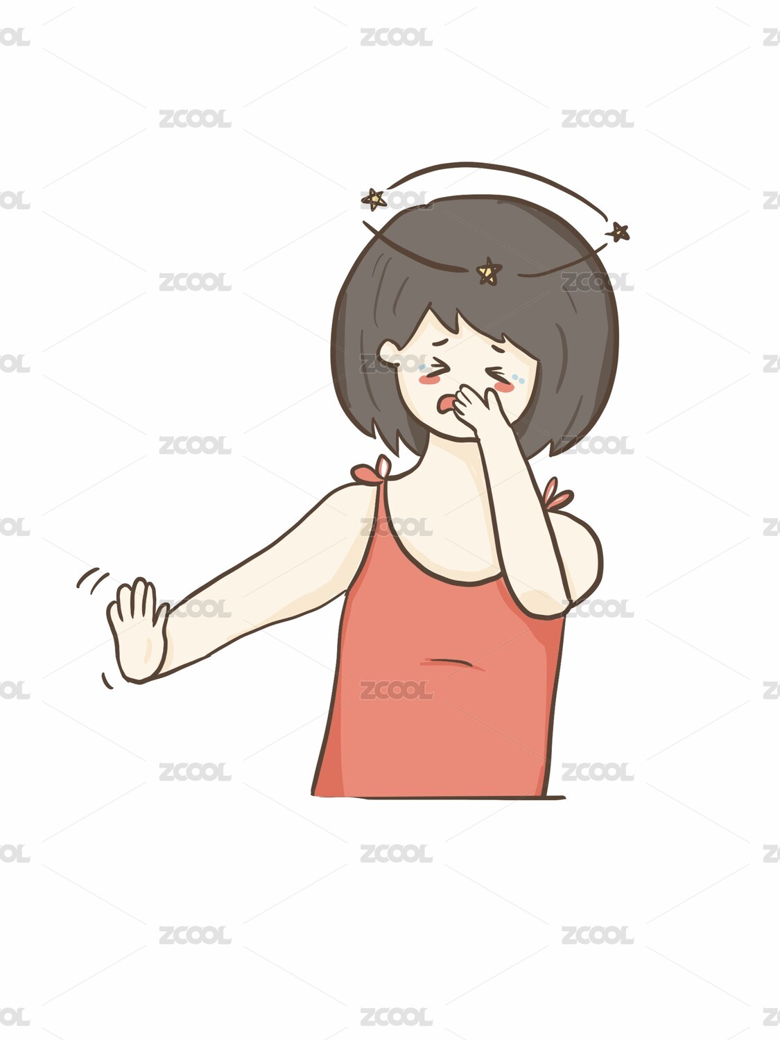 可爱的女孩生病感冒在努力擤鼻涕插画人物元