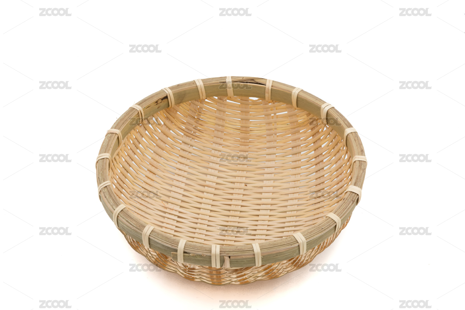 白色背景的竹筐,由竹子编织而成