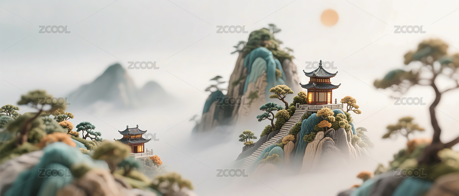 中国风,剪纸,纸艺,山水画,艺术,中国,元素,传统,文化,手工