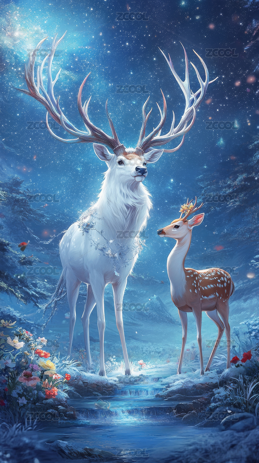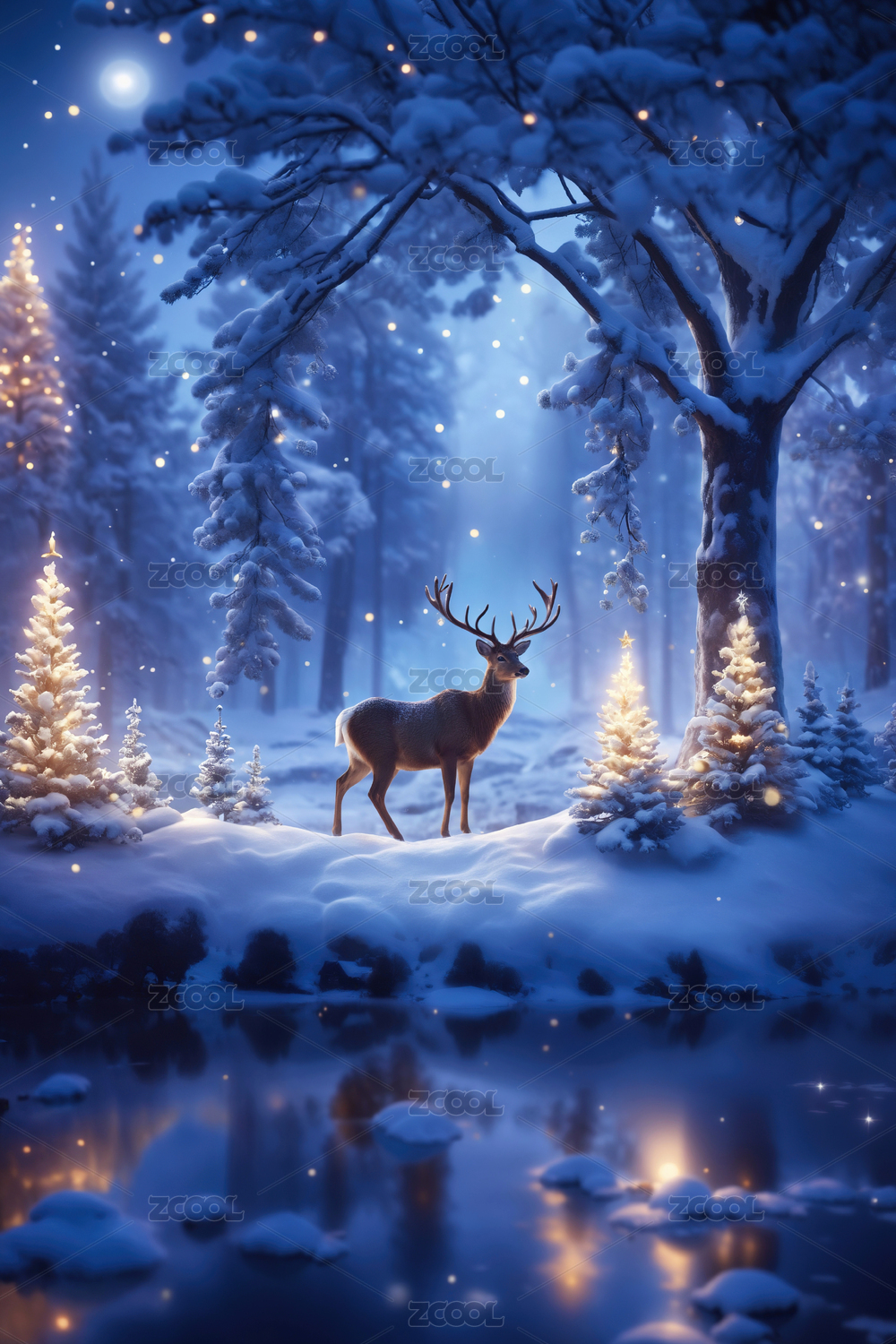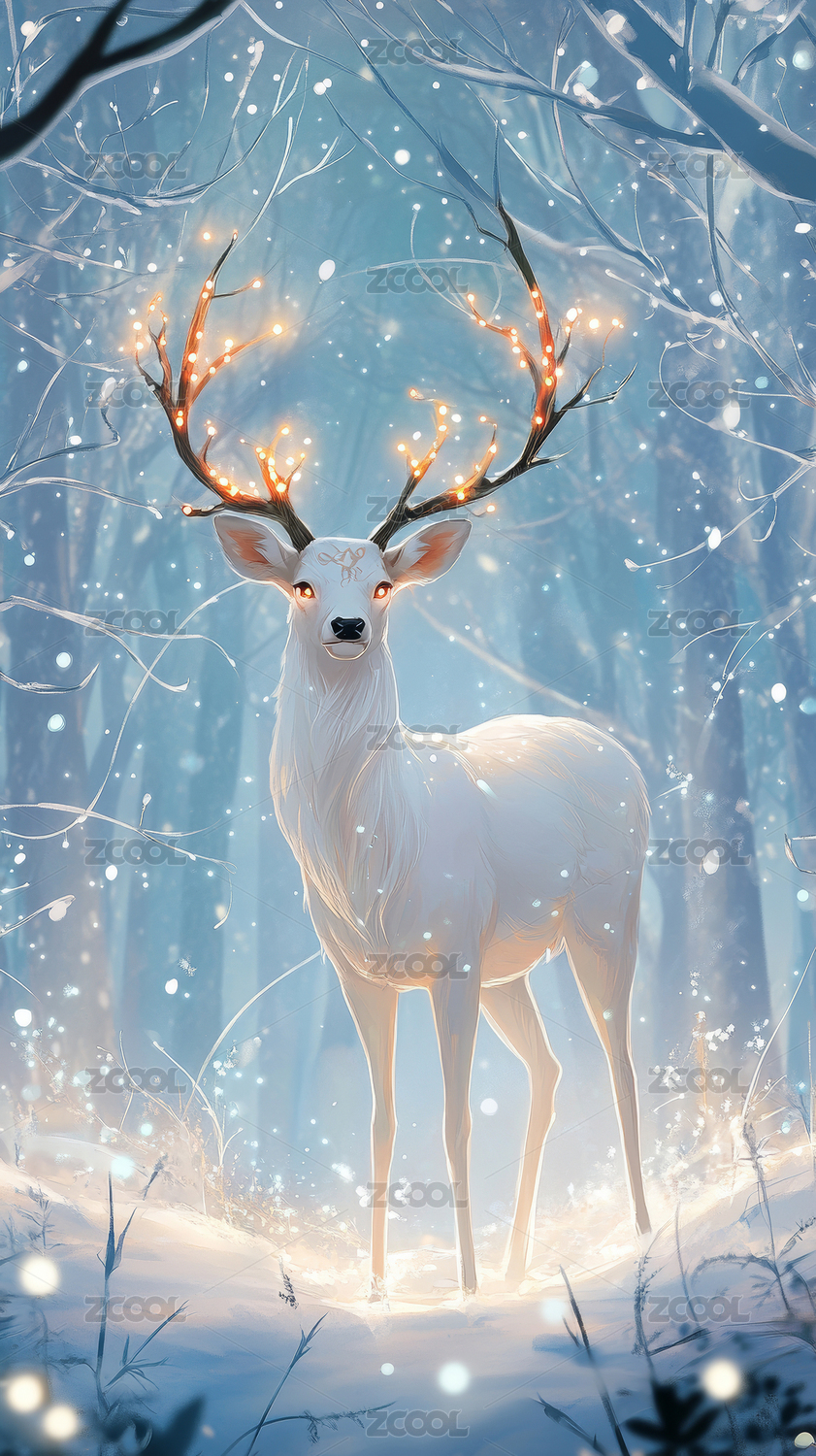 白色, 冬天, 梦幻, 森林, 蓝色, 冷色调, 雪, 自然,雄鹿, 夜晚